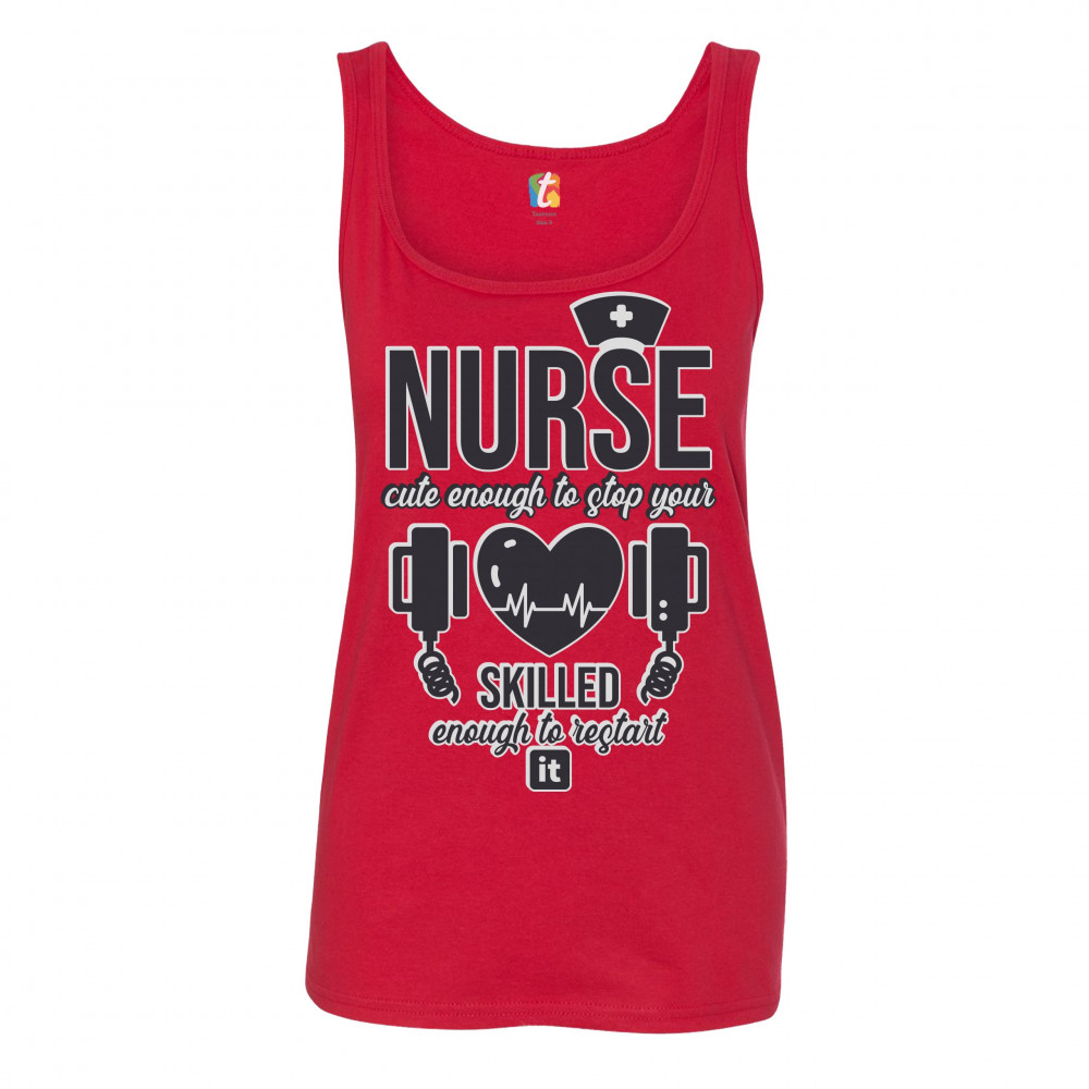 A print saying: "Nurse - Cute Enough to Stop Your Heart, Skilled Enough to Restart It". In the center of the print there is a a heart with two defibrilators to it's sides. A great choice as a gift for a registered nurse, who is busy everyday saving people