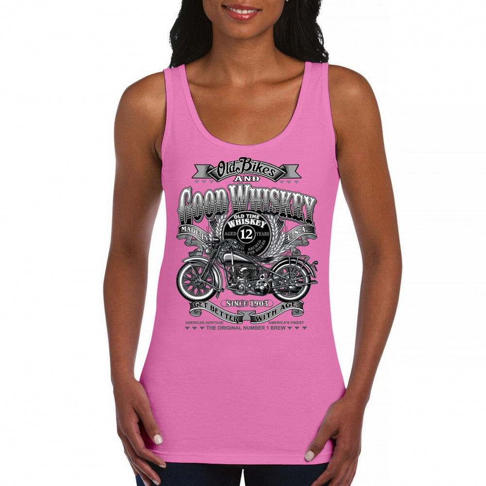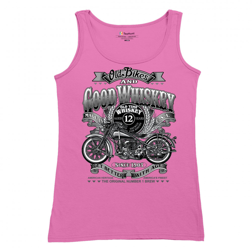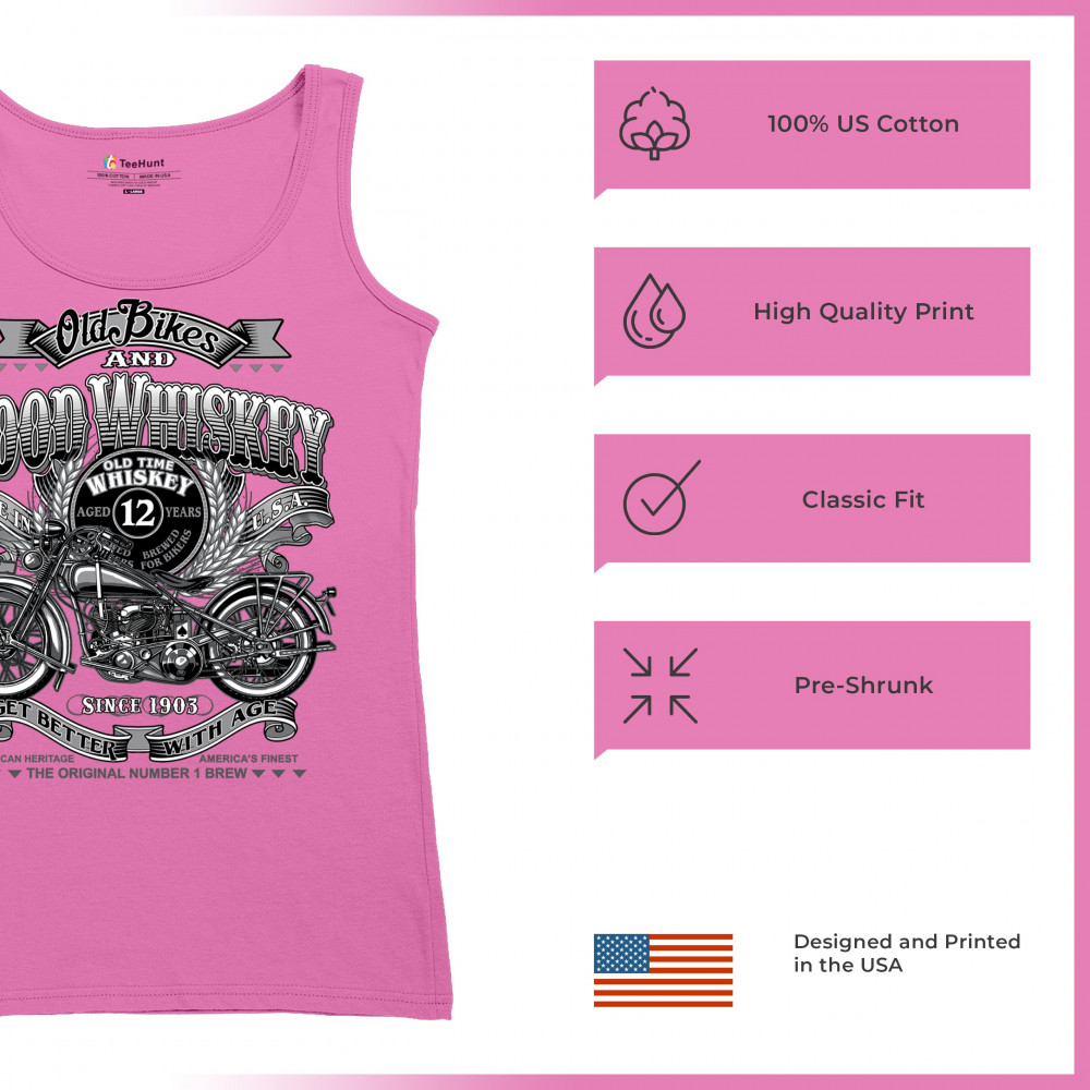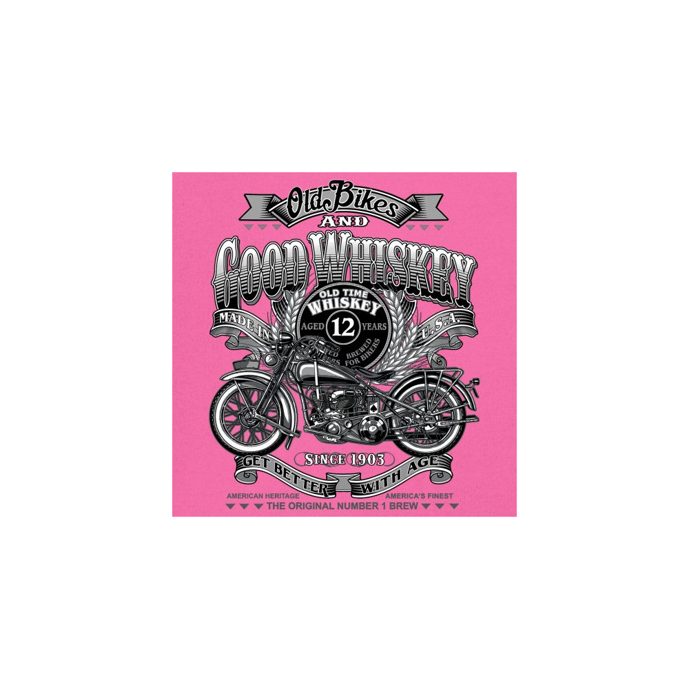 Vintage design with old bike, 12-year whiskey label, and 1903 tribute—perfect for bikers who ride hard and sip slow.