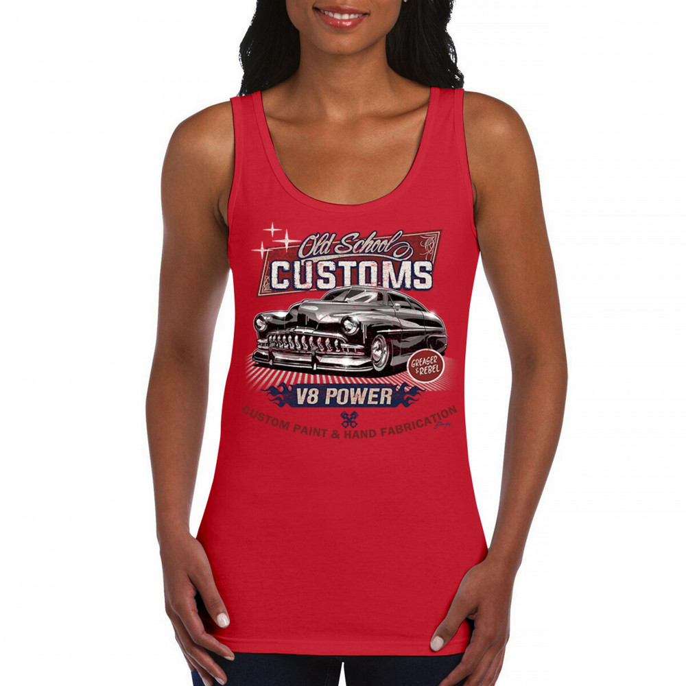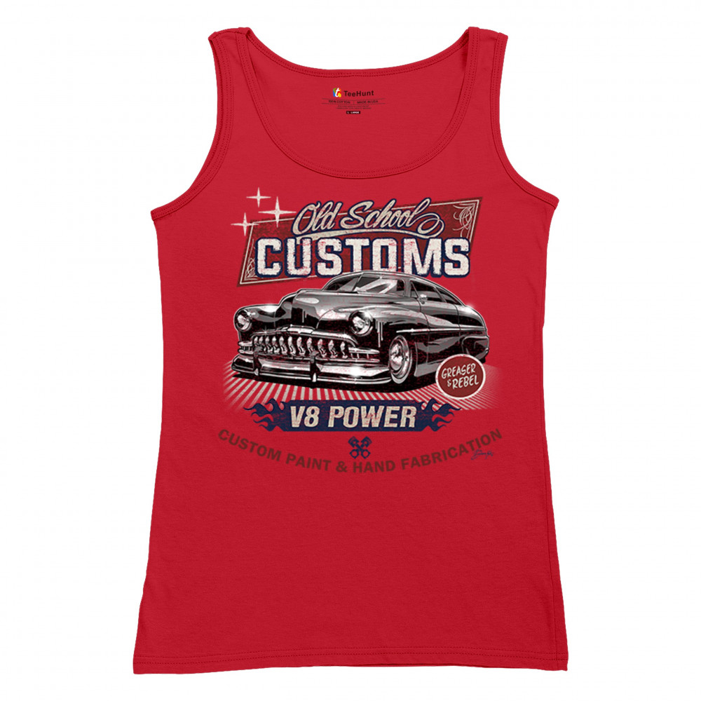 Celebrate classic automotive culture with our "Old School Customs" t-shirt, featuring a V8 power design. Perfect for car enthusiasts and fans of vintage rides.