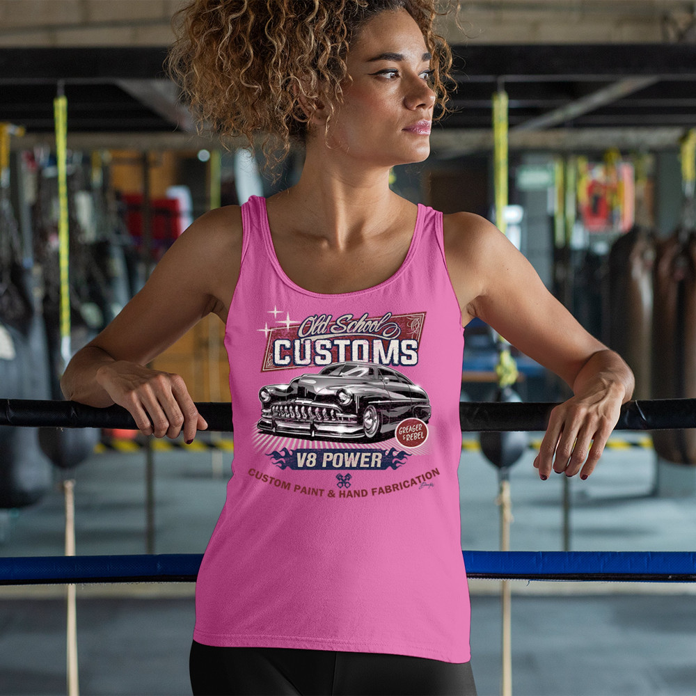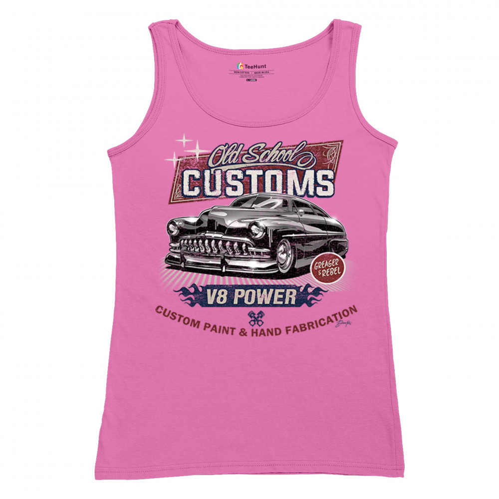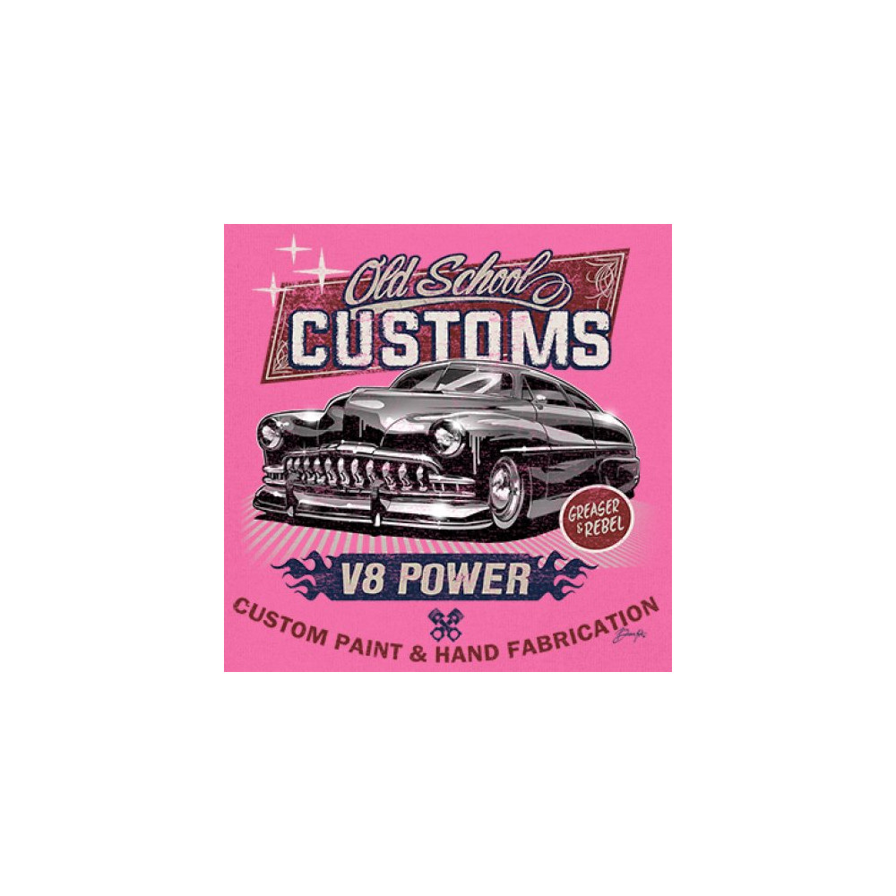 Celebrate classic automotive culture with our "Old School Customs" t-shirt, featuring a V8 power design. Perfect for car enthusiasts and fans of vintage rides.