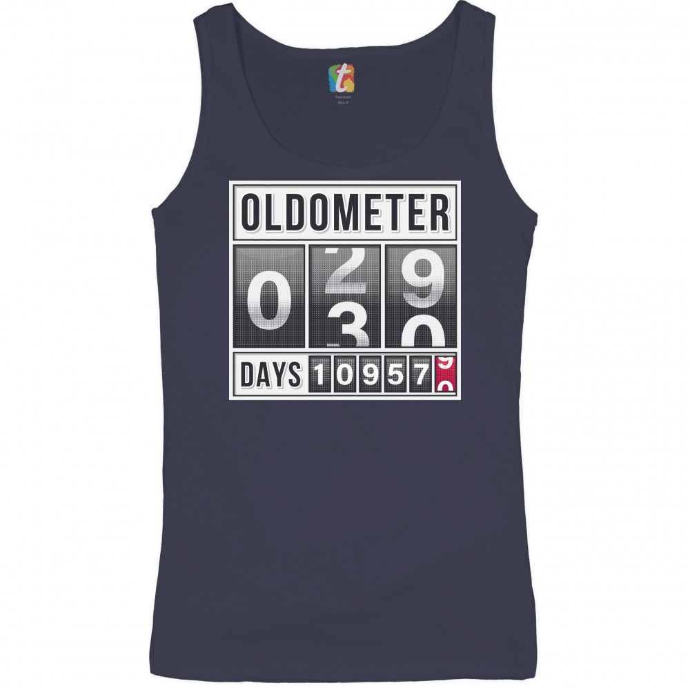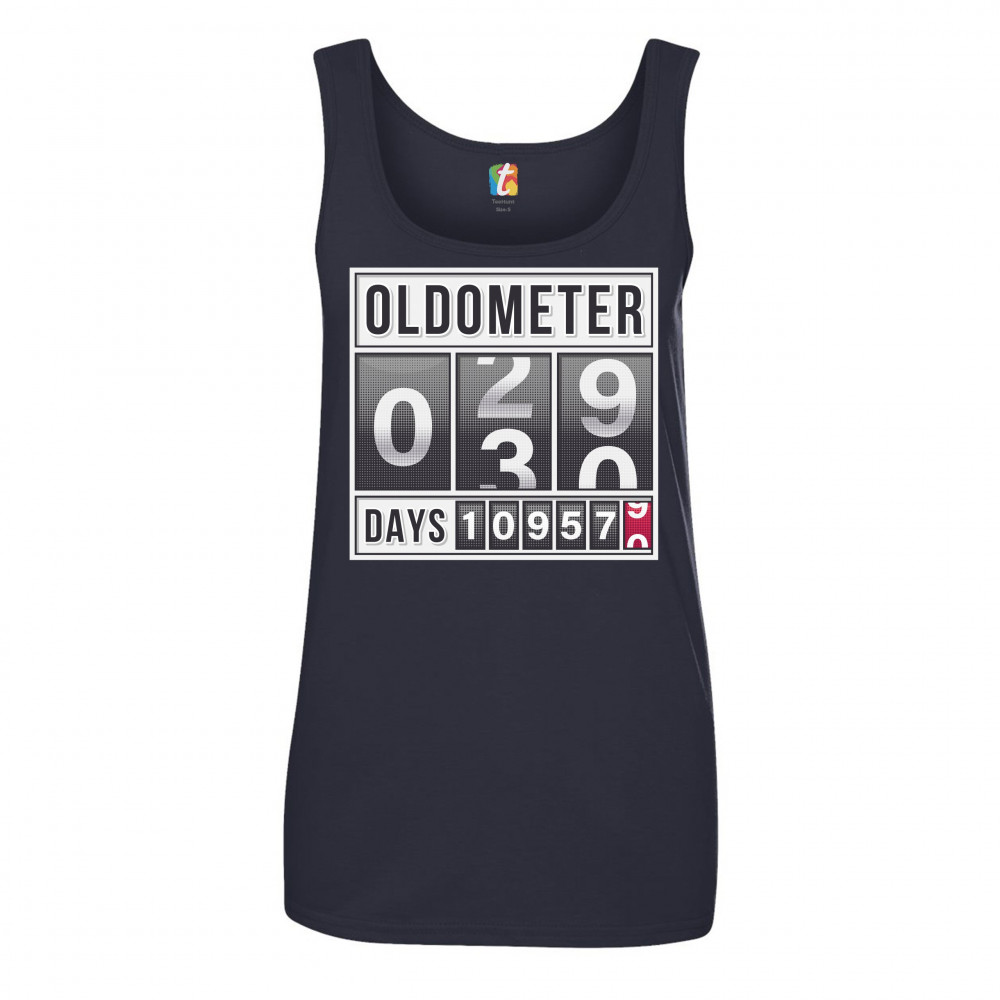 OLDOMETER 29-30 women's tank top funny odometer anniversary birthday navy blue