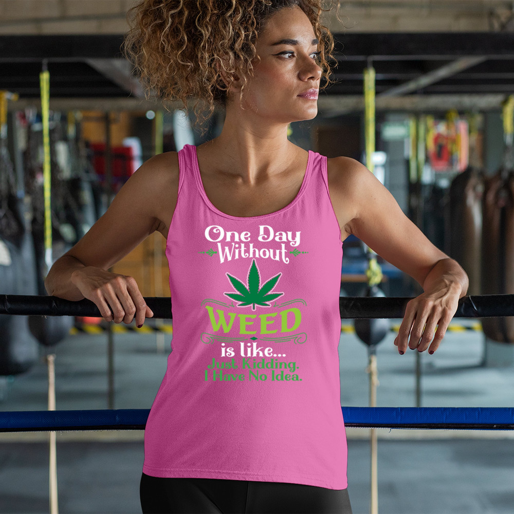 Humorous "One Day Without Weed" design with a bold cannabis leaf. Perfect for fans of Mary Jane, stoned humor, and relaxed, trippy style. Ideal for chill vibes.