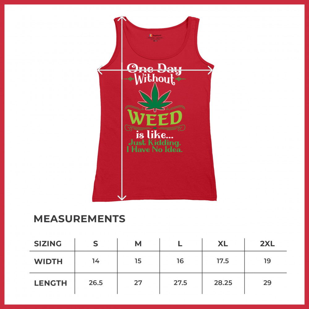 Express your love for Mary Jane and your sense of humor with our "One Day Without Weed" design. Featuring a bold cannabis leaf and a playful, witty message, this design is perfect for those who enjoy the chill vibes of cannabis culture. Ideal for relaxing with your best buds, making a statement about legalization, or simply adding some fun to your wardrobe. Embrace the stoned humor and show off your relaxed, trippy style with this unique design.
