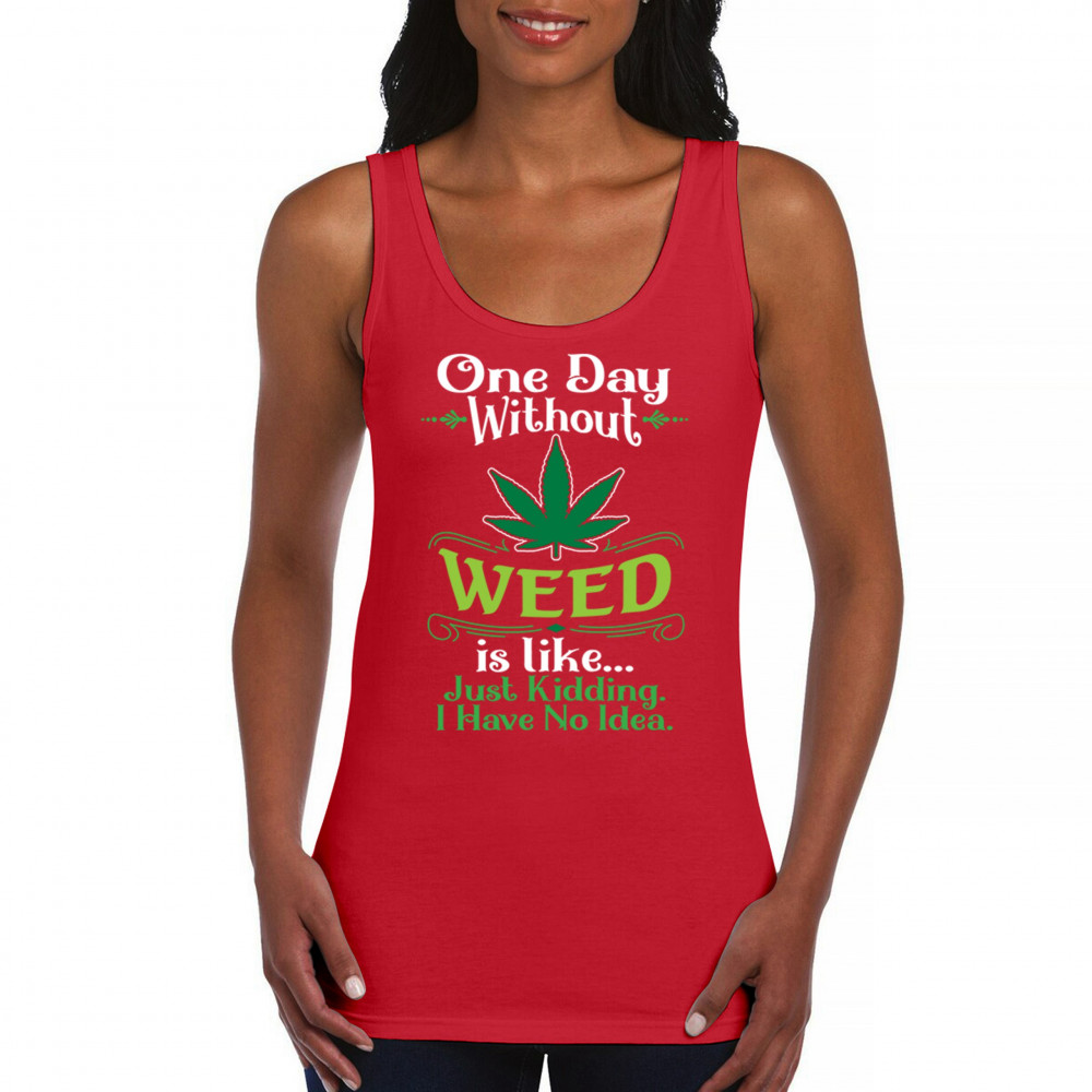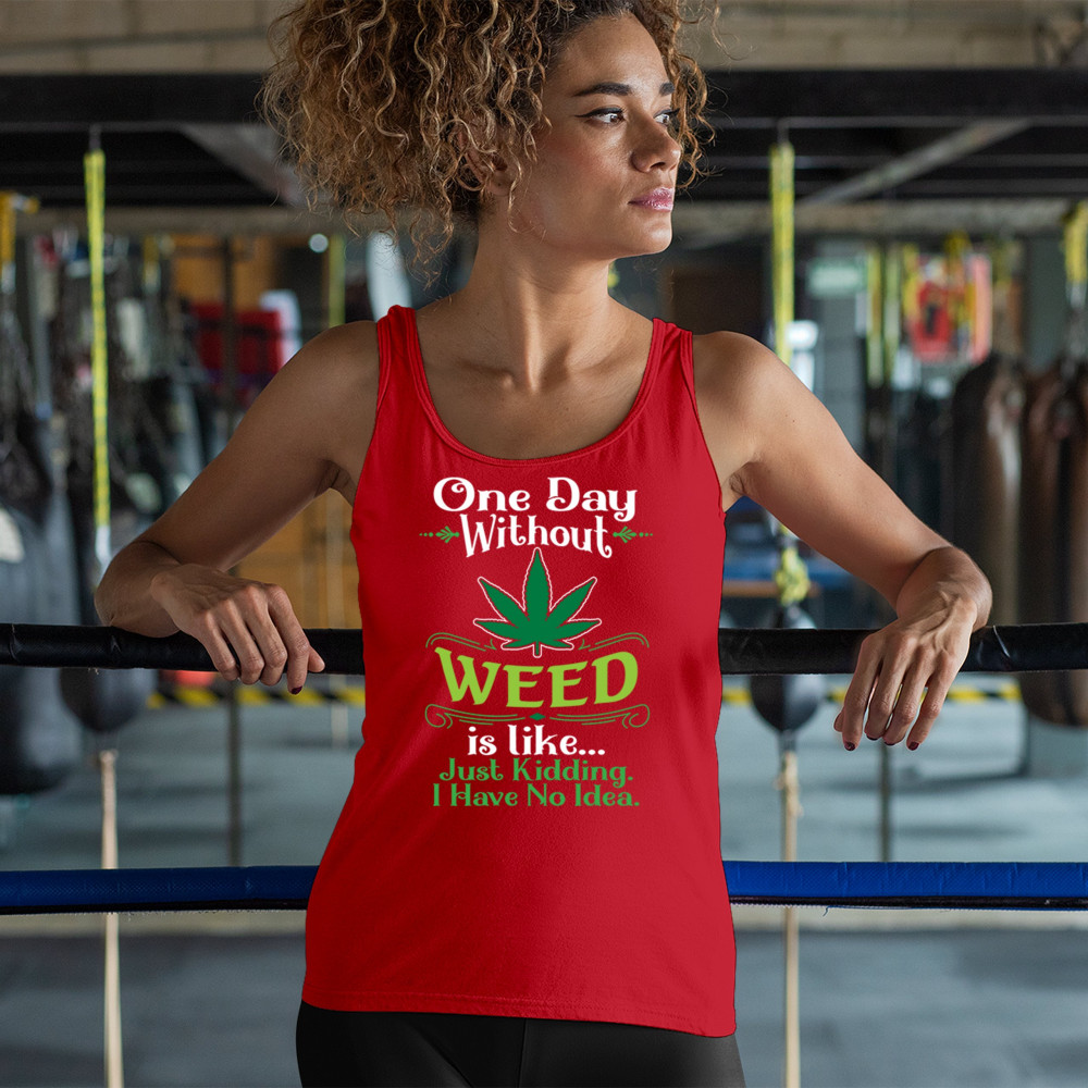 Humorous "One Day Without Weed" design with a bold cannabis leaf. Perfect for fans of Mary Jane, stoned humor, and relaxed, trippy style. Ideal for chill vibes.