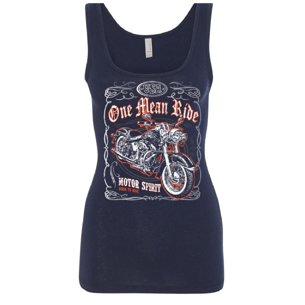 ONE MEAN RIDE women's tank top born to ride chopper bobber route 66 biker top navy blue
