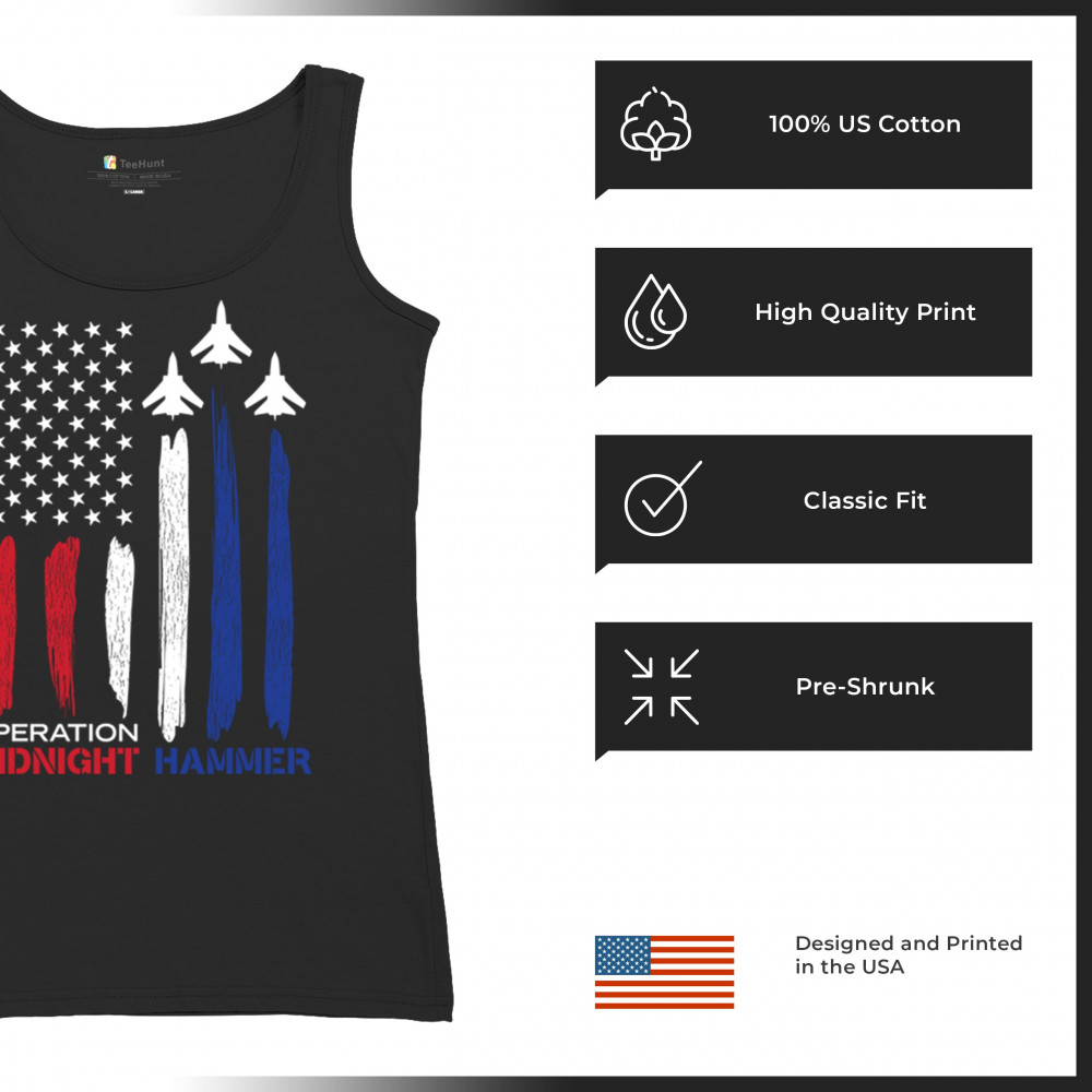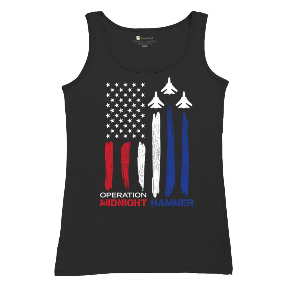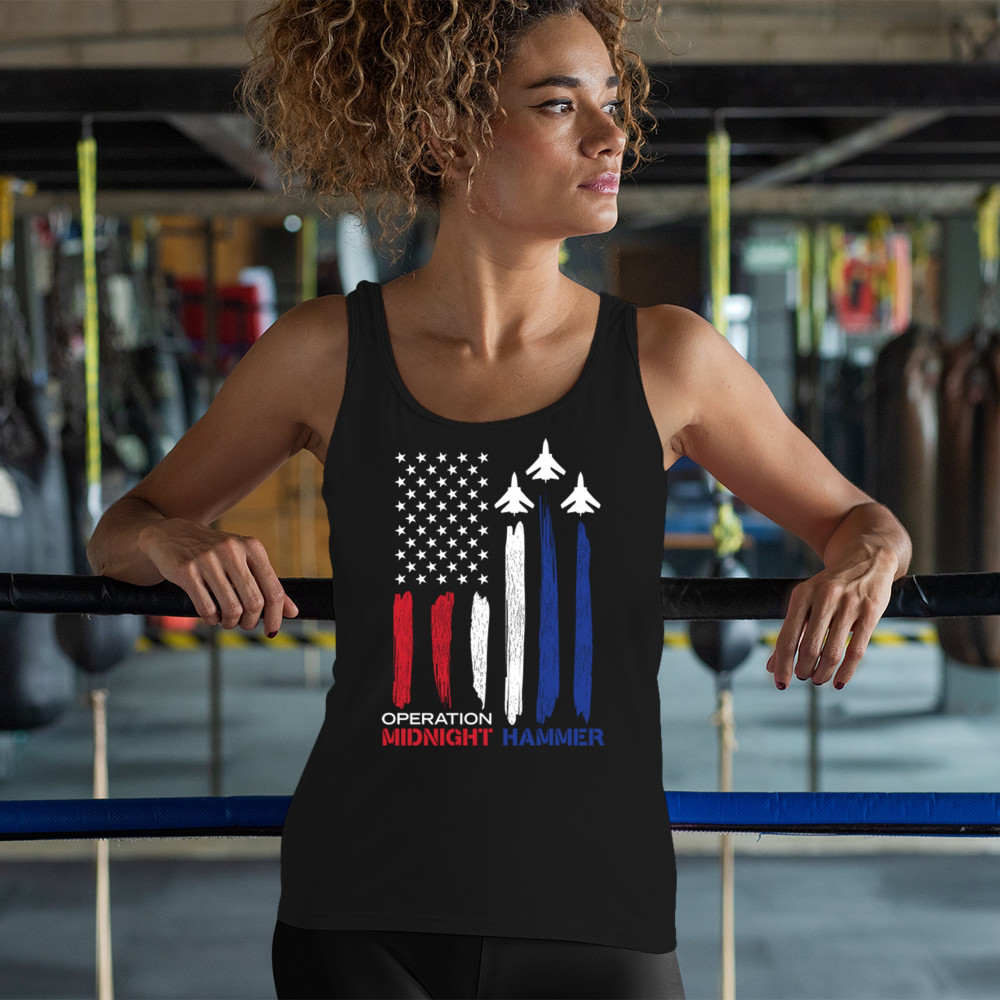 Operation Midnight Hammer design with jets and patriotic flag. Perfect for military pride, conservatives, and true America First supporters.