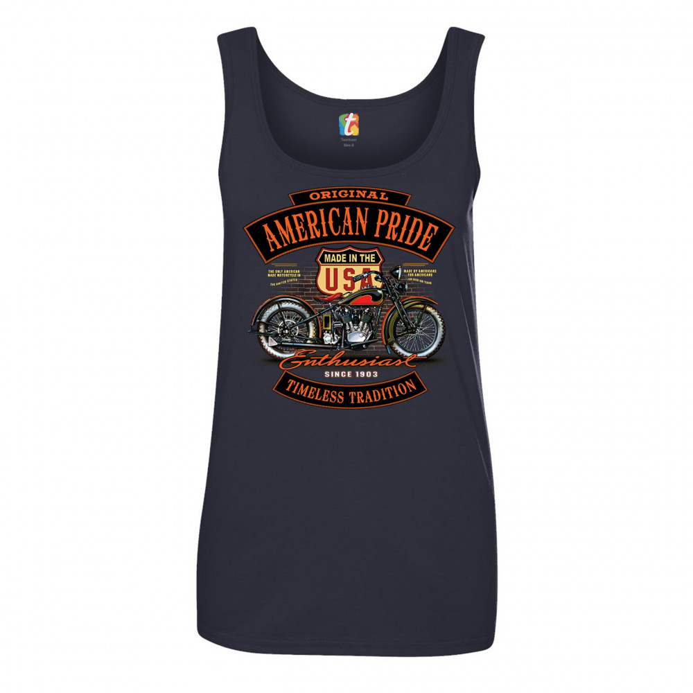 ORIGINAL AMERICAN PRIDE women's tank top biker chopper motorcycle enthusiast navy blue