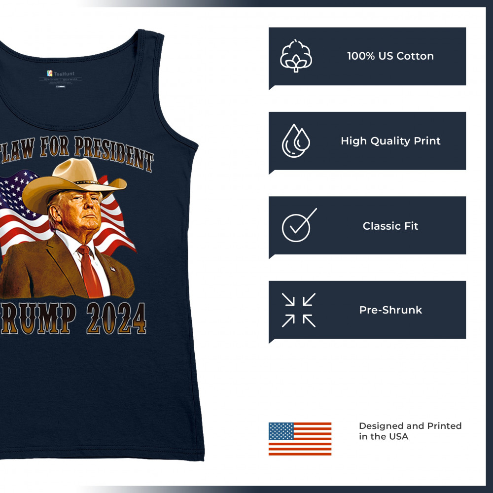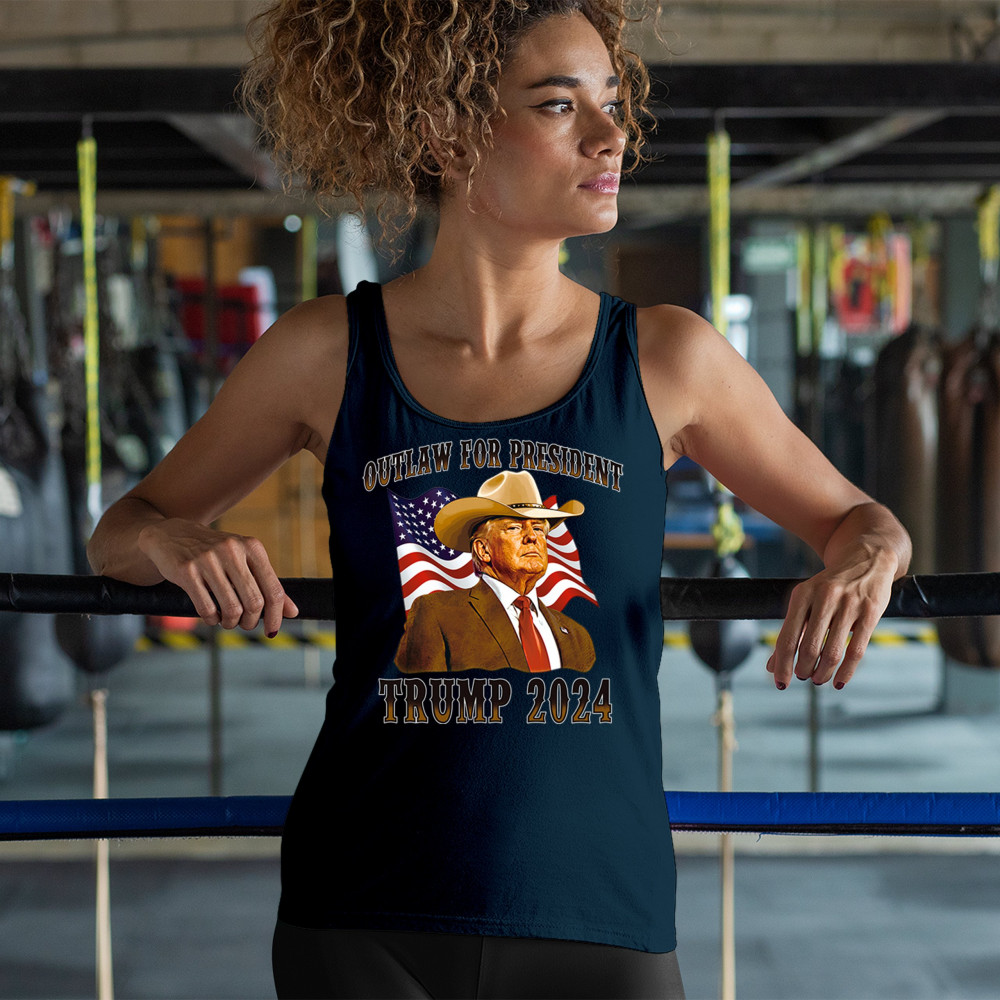 The "Outlaw for President" Trump 2024 design is a powerful symbol of American resilience and conservative pride. Featuring Donald J. Trump in a cowboy hat with the American flag waving behind, this design speaks to supporters who believe in the America First movement, conservative values, and a rebel spirit. Ideal for rallies, patriotic events, and anyone looking to make a bold statement for the 47th President of the United States.