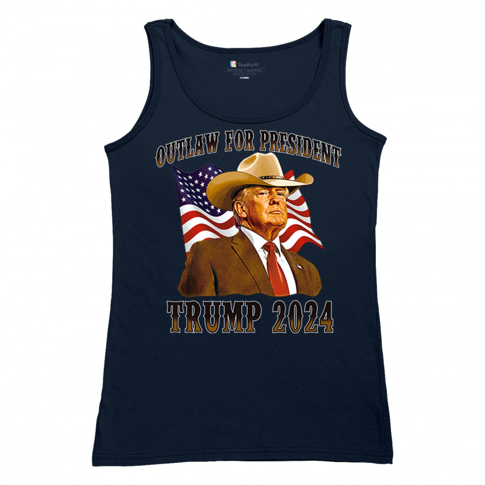 Bold "Outlaw for President" Trump 2024 design for conservative supporters, featuring Donald J. Trump and the American flag. Show your patriotism.