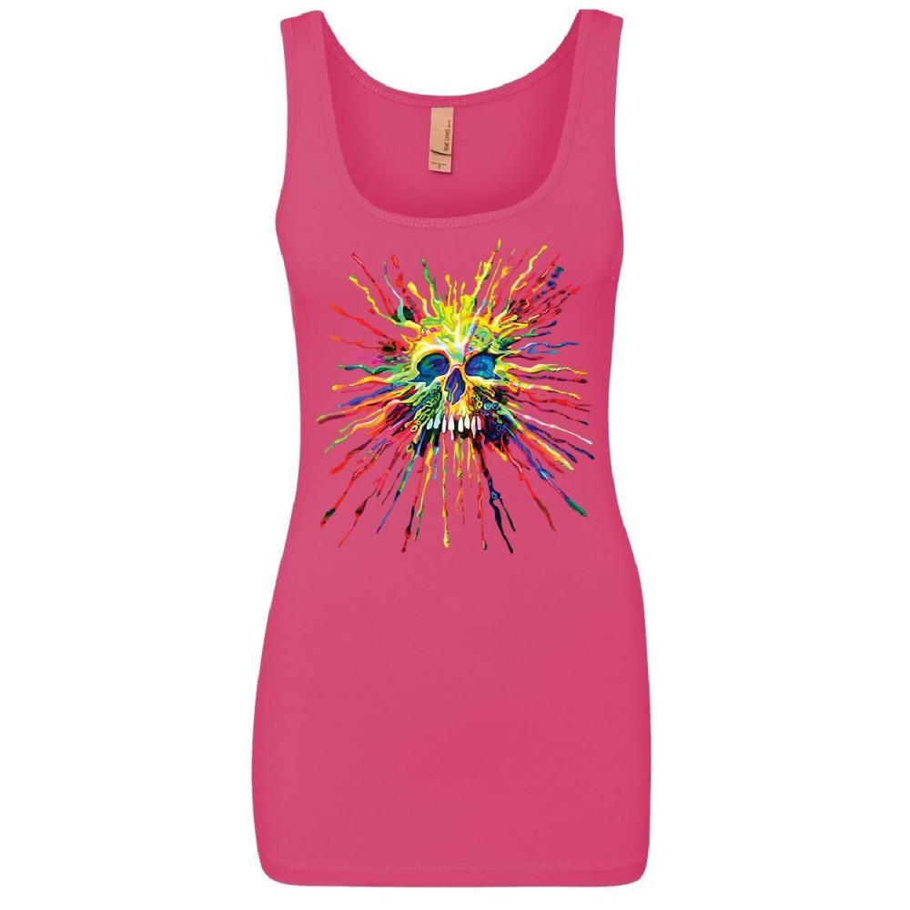 PAINT SPLATTER SKULL women's tank top multicolor art crazy melting drip top pink