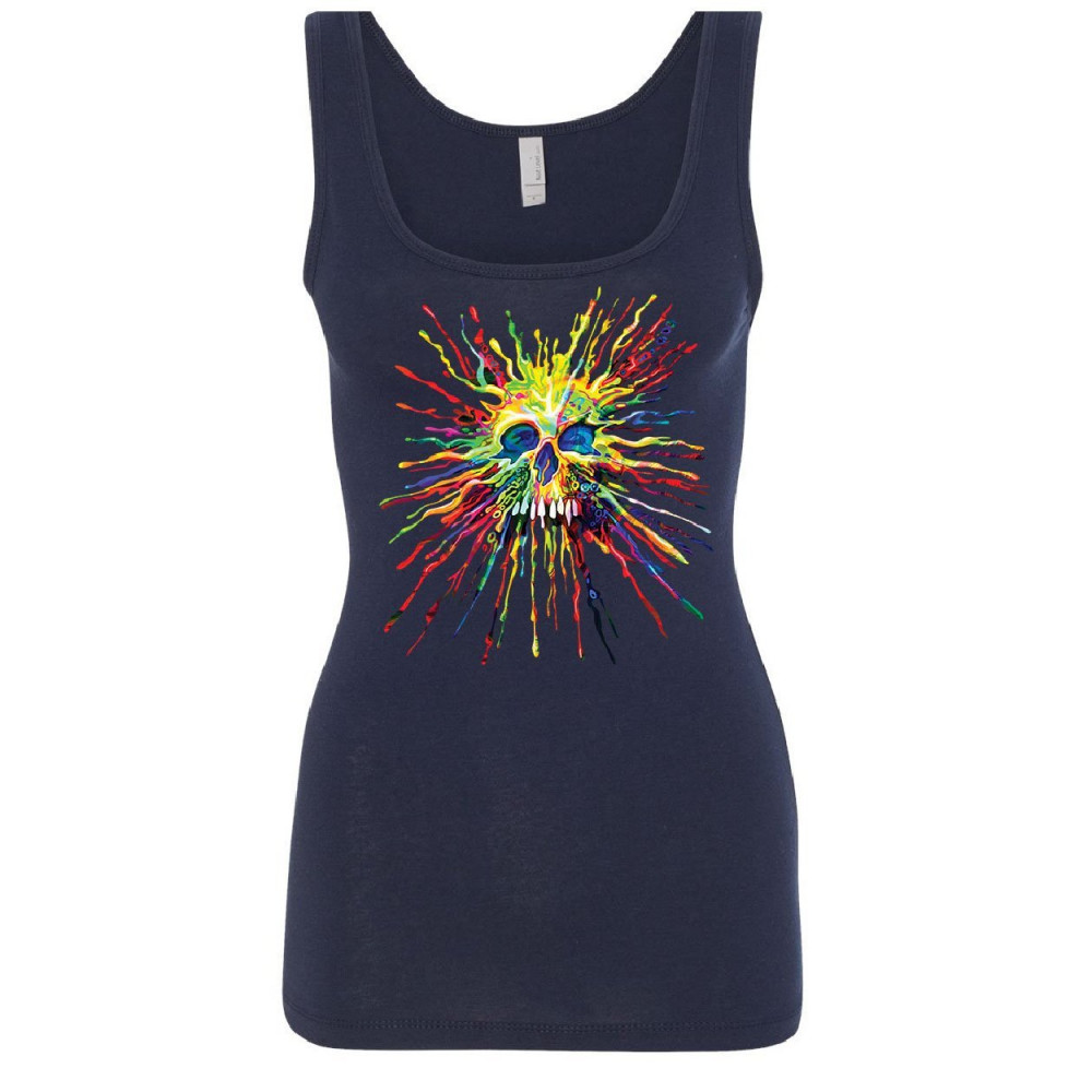PAINT SPLATTER SKULL women's tank top multicolor art crazy melting drip top navy blue