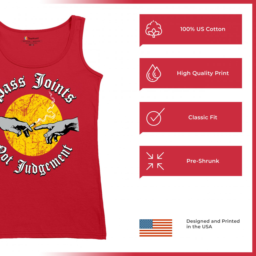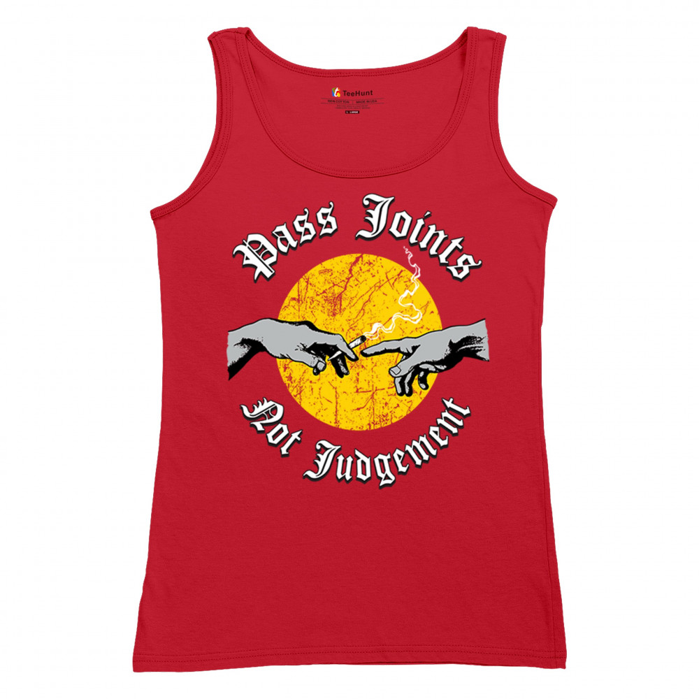 Cannabis culture twist on classic art. Hands passing a joint with “Pass Joints Not Judgement†message. Chill, bold, and unapologetically stoner.