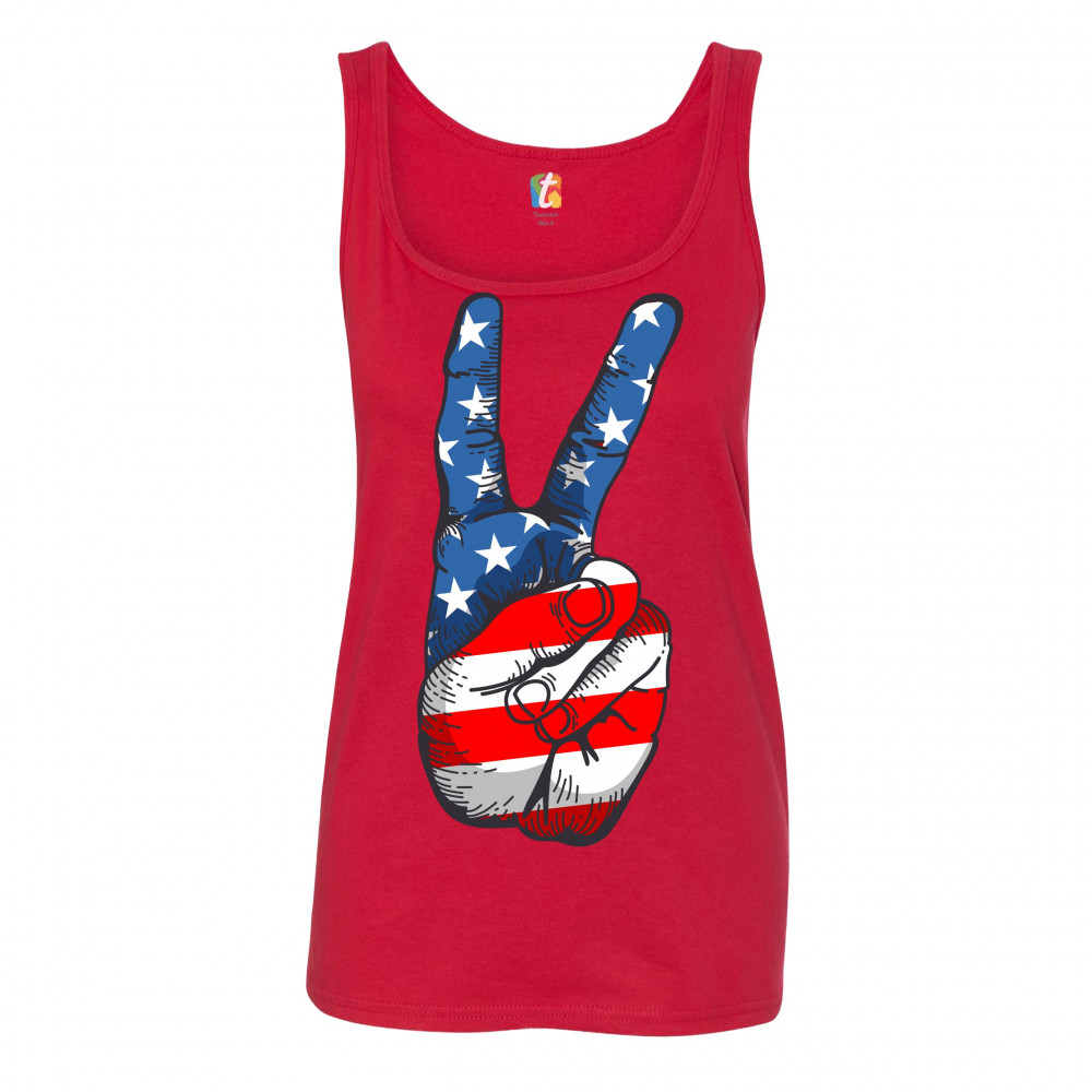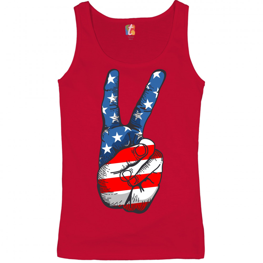 PATRIOTIC VICTORY SIGN women's tank top american flag usa independence day red