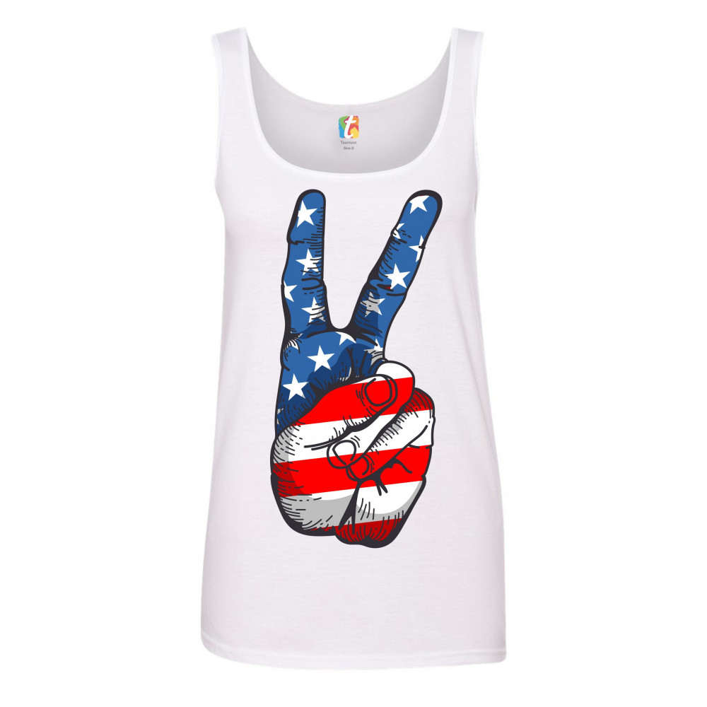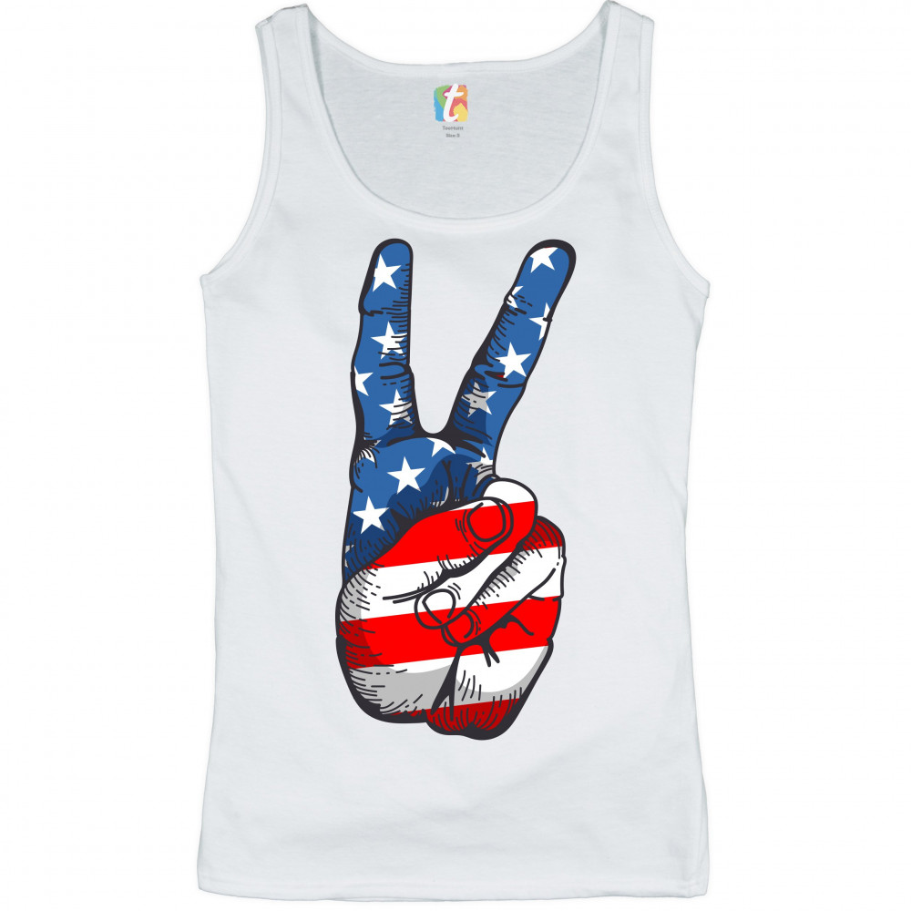 PATRIOTIC VICTORY SIGN women's tank top american flag usa independence day white