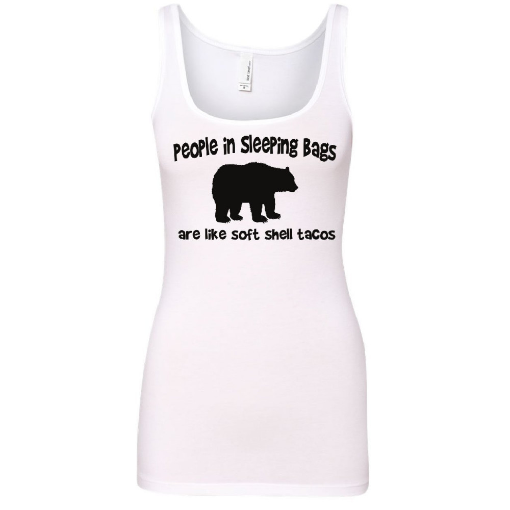 PEOPLE ARE SOFT SHELL TACOS women's tank top funny camping brown bear top white