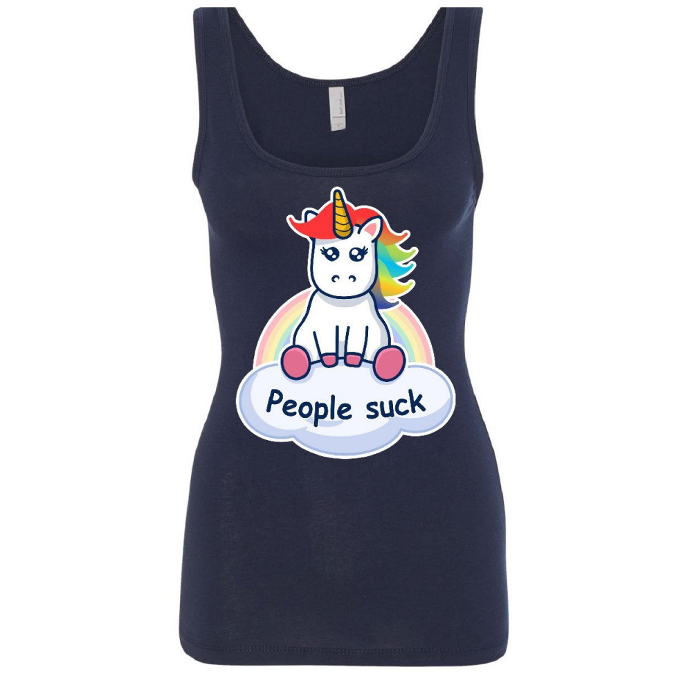 PEOPLE SUCK cute unicorn women's tank top funny rainbow pony introvert top navy blue