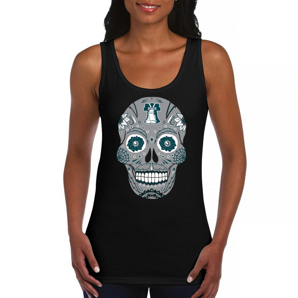 Philly meets tradition in this Sugar Skull design, mixing calavera art with the iconic liberty bell and marigold flowers. Perfect for Philly sports culture, fantasy league energy, or game day skull vibes, it captures Philly gothic art and fan zone spirit. A unique way to honor Dia de los Muertos while showing local Philadelphia pride and heritage in bold style.