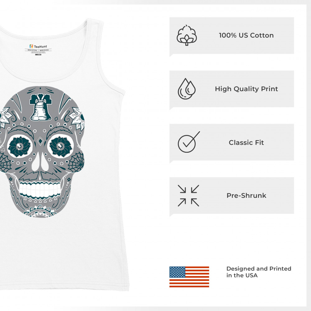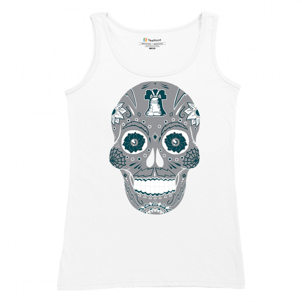 Philly meets tradition in this Sugar Skull design, mixing calavera art with the iconic liberty bell and marigold flowers. Perfect for Philly sports culture, fantasy league energy, or game day skull vibes, it captures Philly gothic art and fan zone spirit. A unique way to honor Dia de los Muertos while showing local Philadelphia pride and heritage in bold style.
