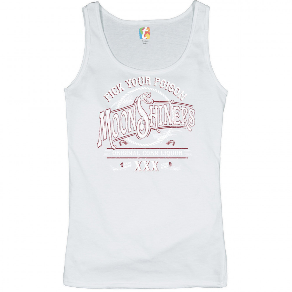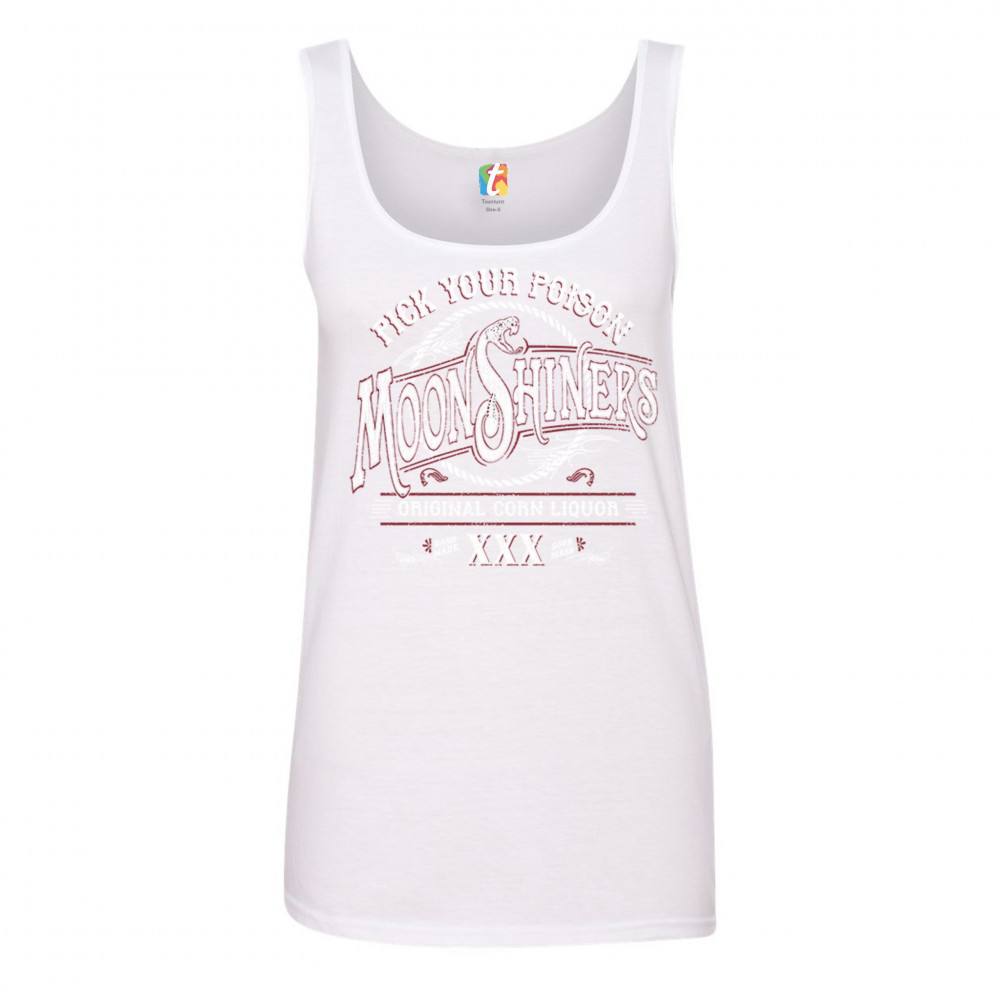 PICK YOUR POISON MOONSHINERS women's tank top original corn liquor xxx white