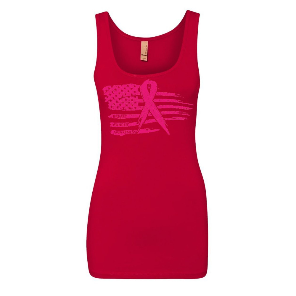PINK RIBBON AMERICAN FLAG pink ribbon flag women's tank top breast cancer awareness hope survivor top red
