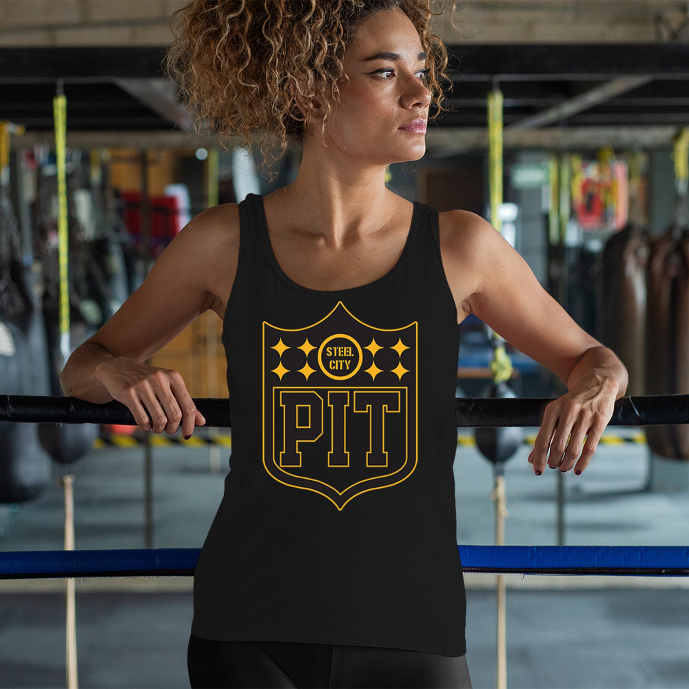 Steel City PIT shield football gear celebrating Pittsburgh football nation, gridiron tradition, playoff vibes, and sports heritage.