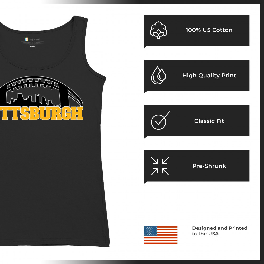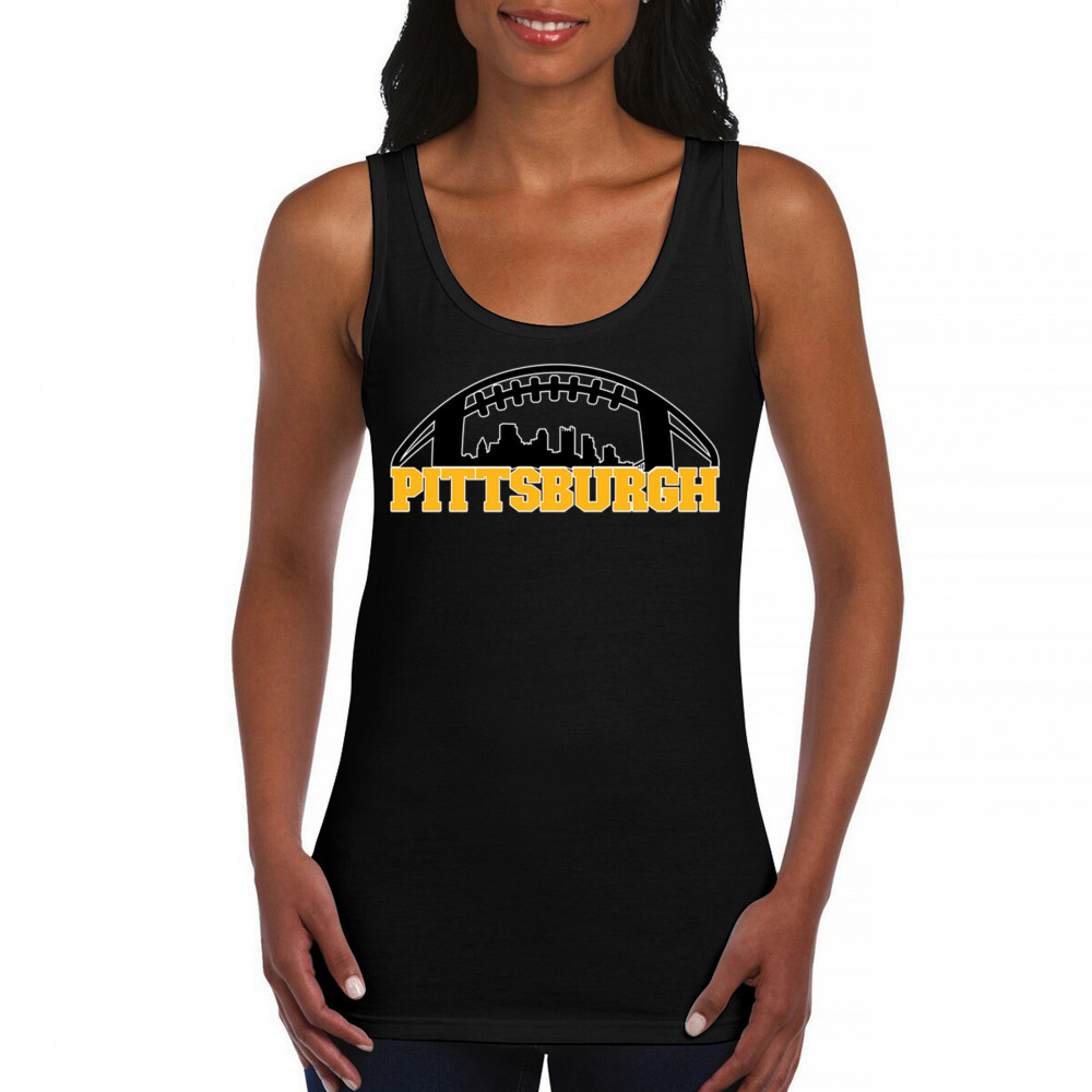 Embrace your Steel City pride with this bold Pittsburgh-themed design, showcasing the city skyline in a unique football graphic. Perfect for game day celebrations, tailgating parties, or everyday wear, this design captures the energy and passion of Pittsburgh's legendary sports culture. Whether you're cheering on your favorite team or representing your city, this design is a must-have for Pittsburgh fans.