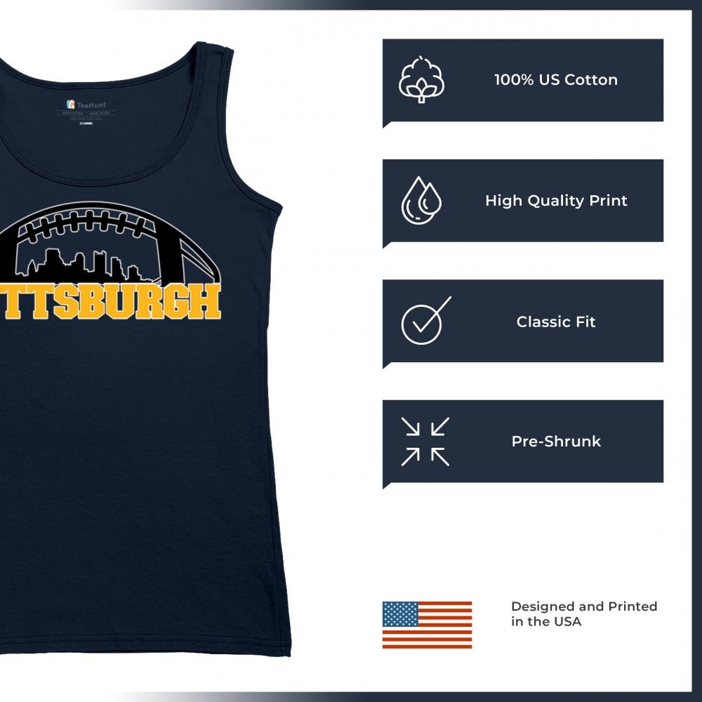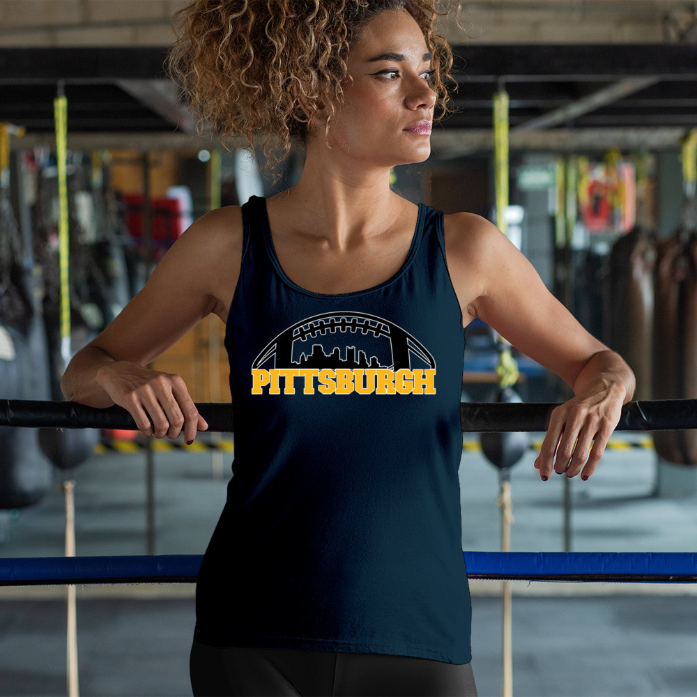 Embrace your Steel City pride with this bold Pittsburgh-themed design, showcasing the city skyline in a unique football graphic. Perfect for game day celebrations, tailgating parties, or everyday wear, this design captures the energy and passion of Pittsburgh's legendary sports culture. Whether you're cheering on your favorite team or representing your city, this design is a must-have for Pittsburgh fans.