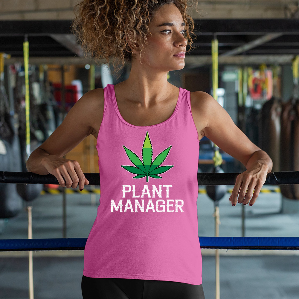 Humorous "Plant Manager" design featuring a bold green cannabis leaf. Perfect for fans of Mary Jane, stoned humor, and relaxed style. Ideal for chill vibes.