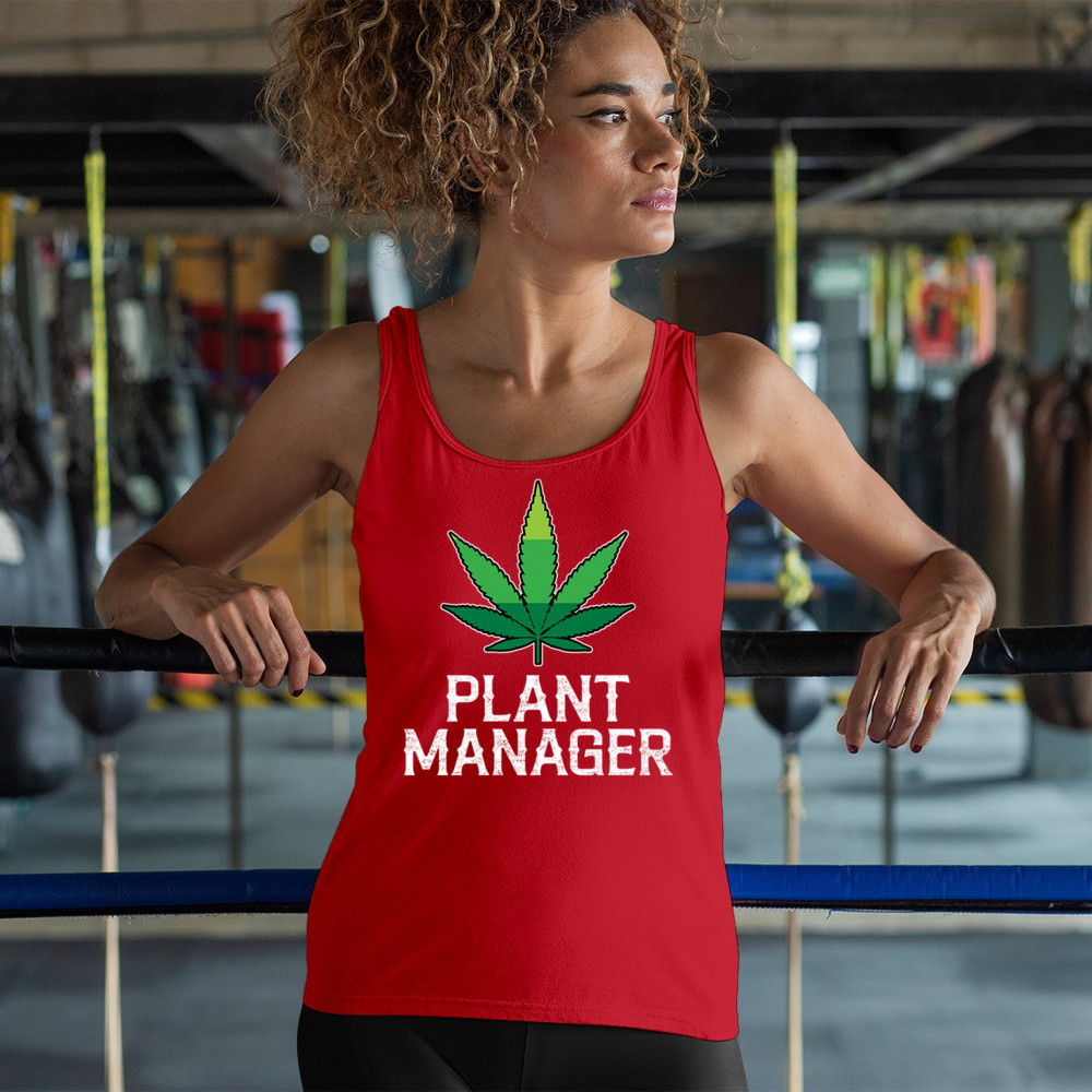 Humorous "Plant Manager" design featuring a bold green cannabis leaf. Perfect for fans of Mary Jane, stoned humor, and relaxed style. Ideal for chill vibes.