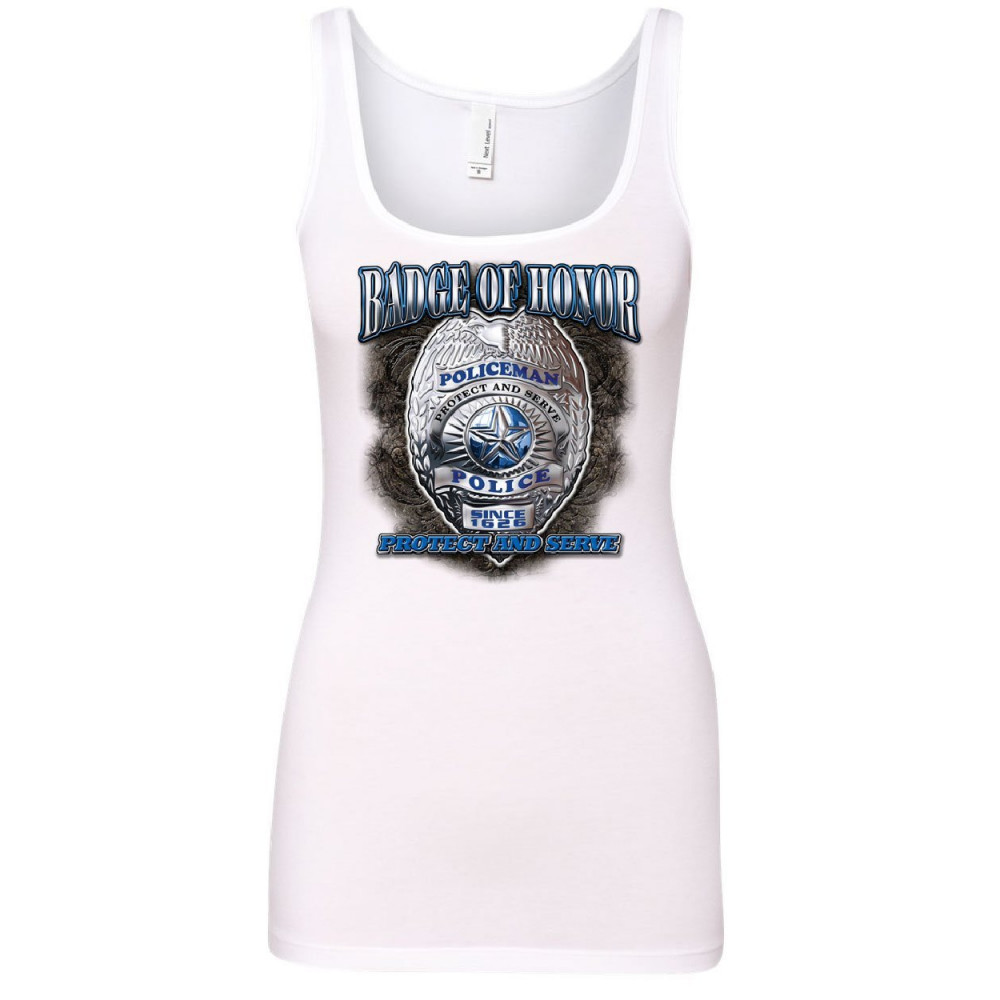 POLICEMAN BADGE OF HONOR women's tank top police protect and serve cop pd top white
