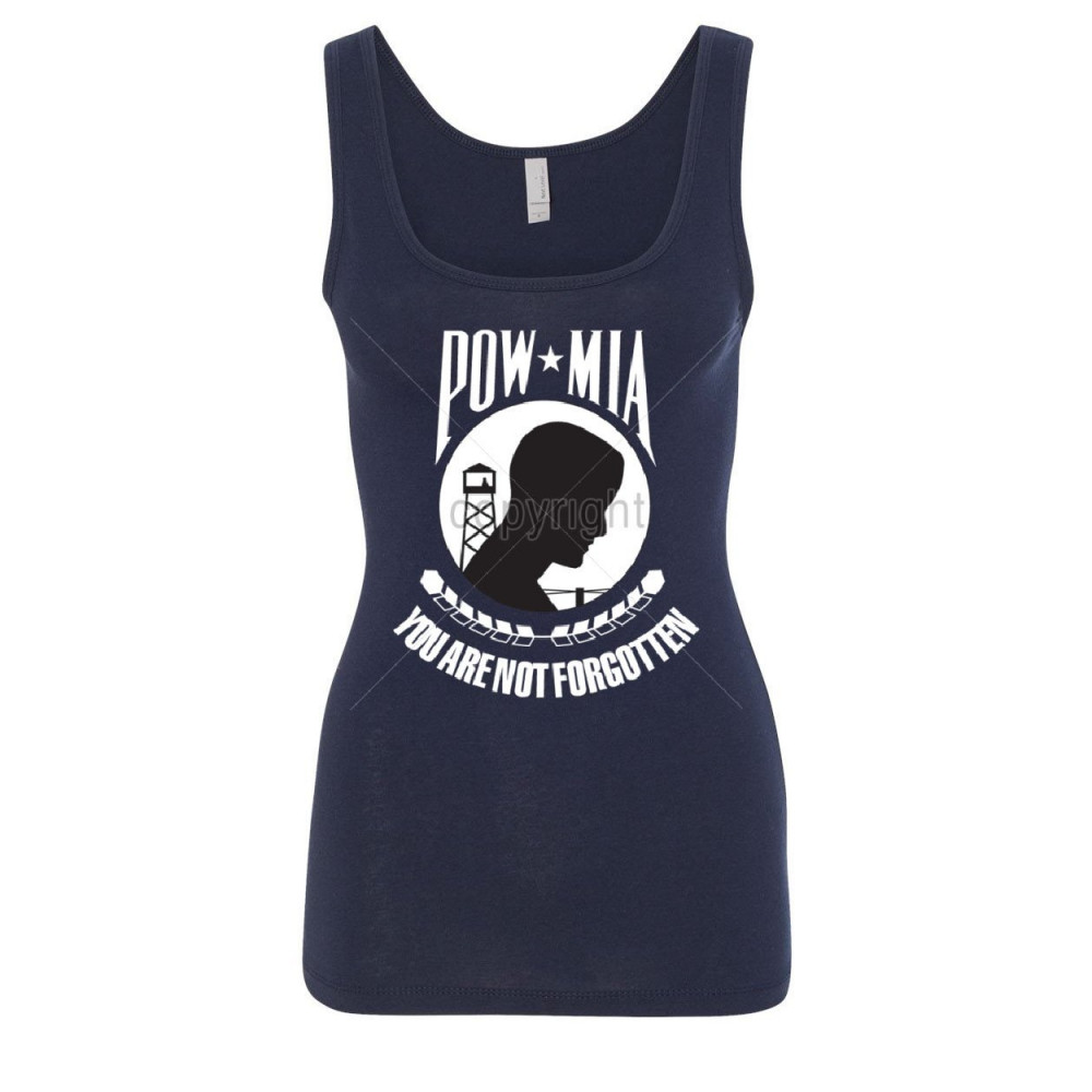 POW MIA YOU ARE NOT FORGOTTEN women's tank top patriotic top navy blue