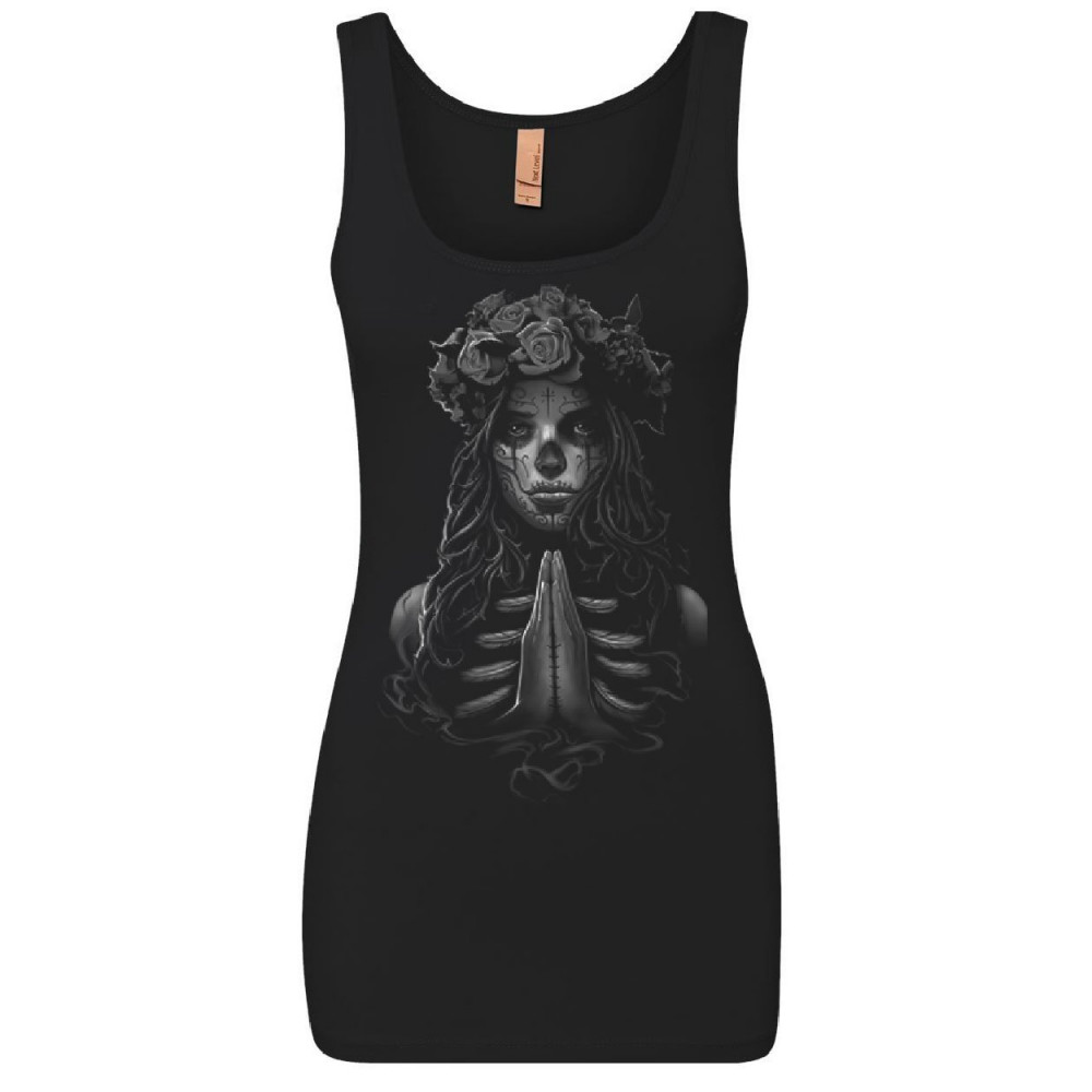 PRAY GIRL women's tank top calavera day of the dead dia de los muertos top black