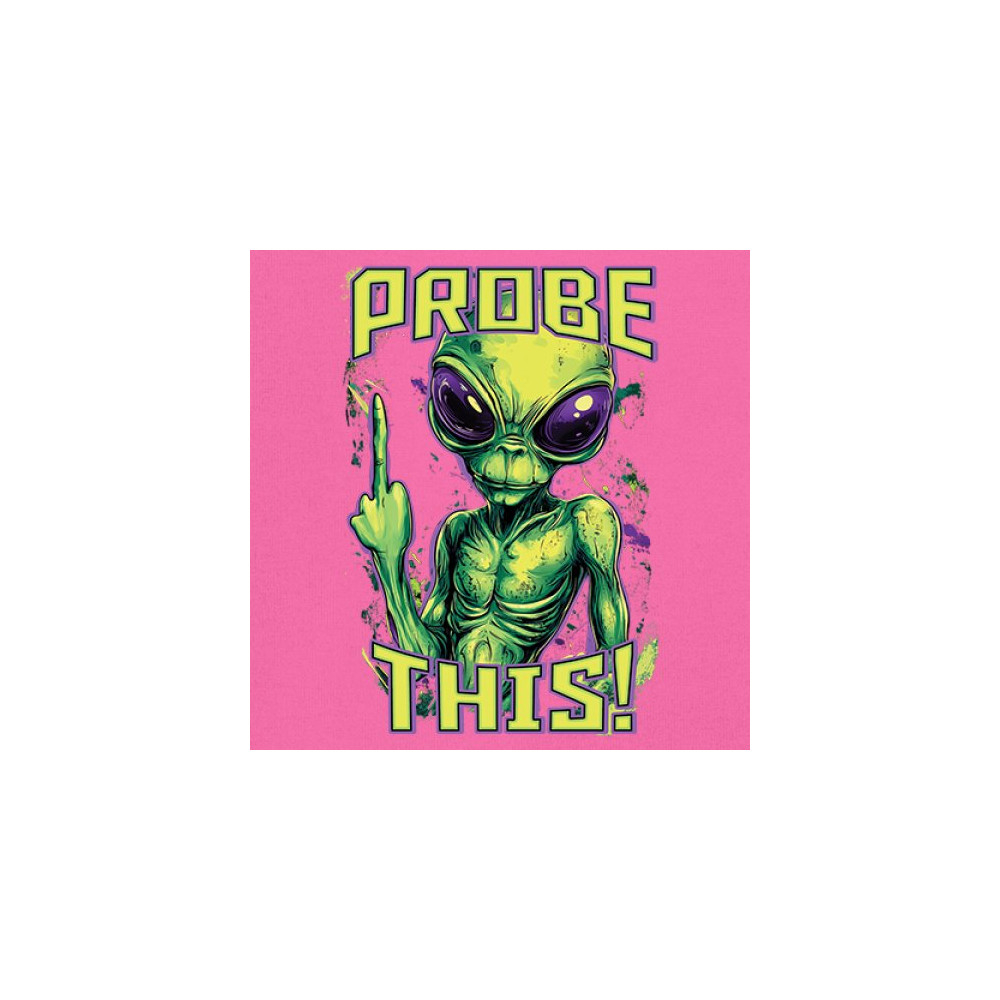 Alien attitude goes full throttle in this rebellious design featuring a defiant extraterrestrial flipping the bird. Bold green and purple tones amplify the sarcasm, making it perfect for UFO fans, protest vibes, and anyone with a dark sense of humor. Wear it loud to alien fests, parties, or anytime you want to stir the stars.