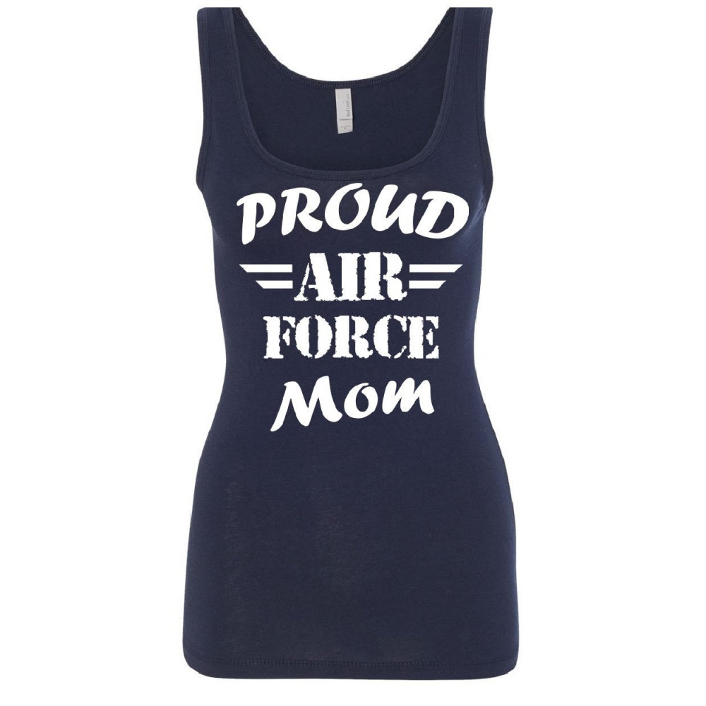 PROUD AIR FORCE MOM women's tank top military patriot heroic mother's day top navy blue