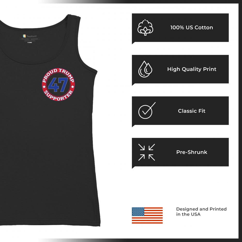 Show your steadfast support for President Trump with our "Trump Supporter 47" design. Emblazoned with patriotic symbols like the American flag and iconic imagery, this design embodies the spirit of the America First movement. Join the Trump Train to victo