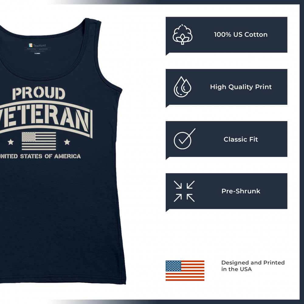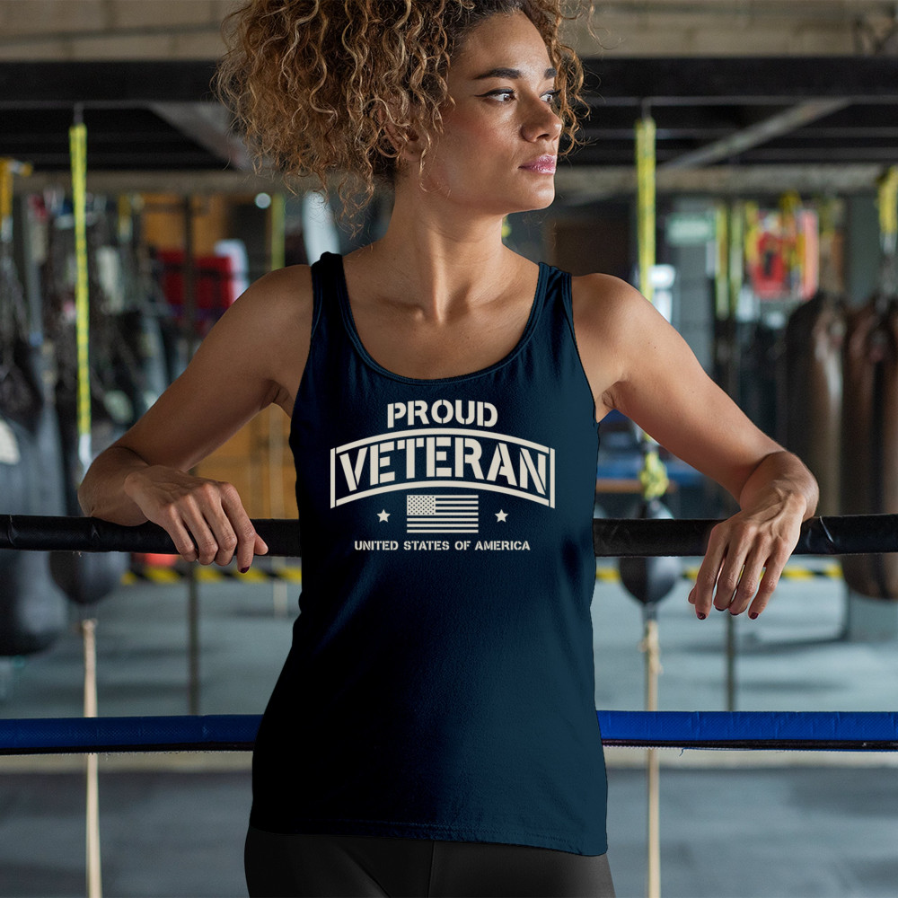 "Proud Veteran" shirt featuring bold design and American flag. Perfect for Memorial Day, Veterans Day, and everyday patriotism. High-quality and comfortable.