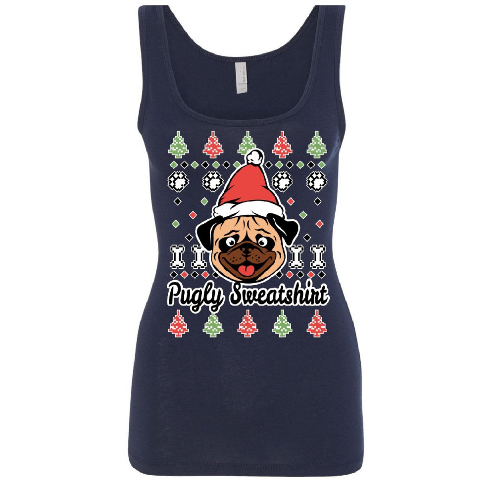 PUGLY SWEATSHIRT women's tank top pug ugly sweater jolly christmas xmas top navy blue