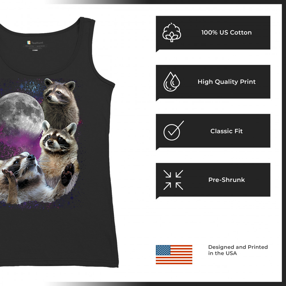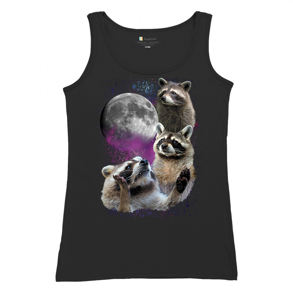 Embrace nature with this quirky raccoon and moon design, perfect for space and animal lovers. Ideal for casual wear or gifts.