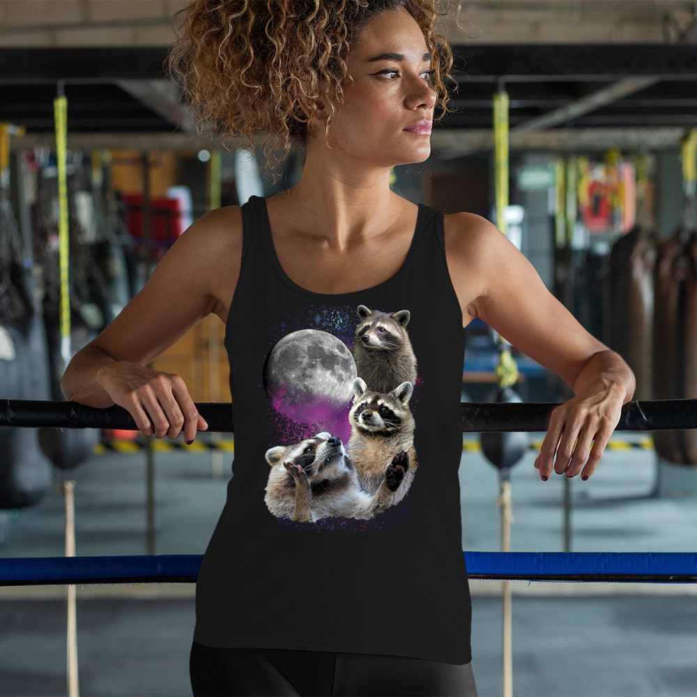Step into the wild with this delightful and quirky raccoon and moon design. This captivating graphic features three raccoons against a backdrop of a starry night sky and a full moon, evoking the mysterious beauty of the wilderness. Perfect for nature lovers and those who appreciate nocturnal creatures with a silly twist, this design is a versatile addition to any casual wardrobe. It's ideal for outdoor adventures, relaxed outings, or themed events, and makes a thoughtful gift for anyone who loves the night and its charming wildlife.