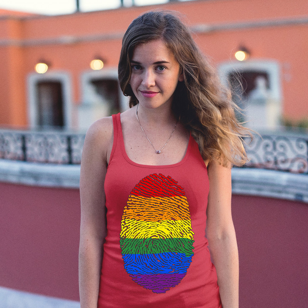 RAINBOW FINGERPRINT women's tank top gay pride month lgbtq support ally red