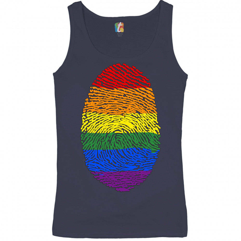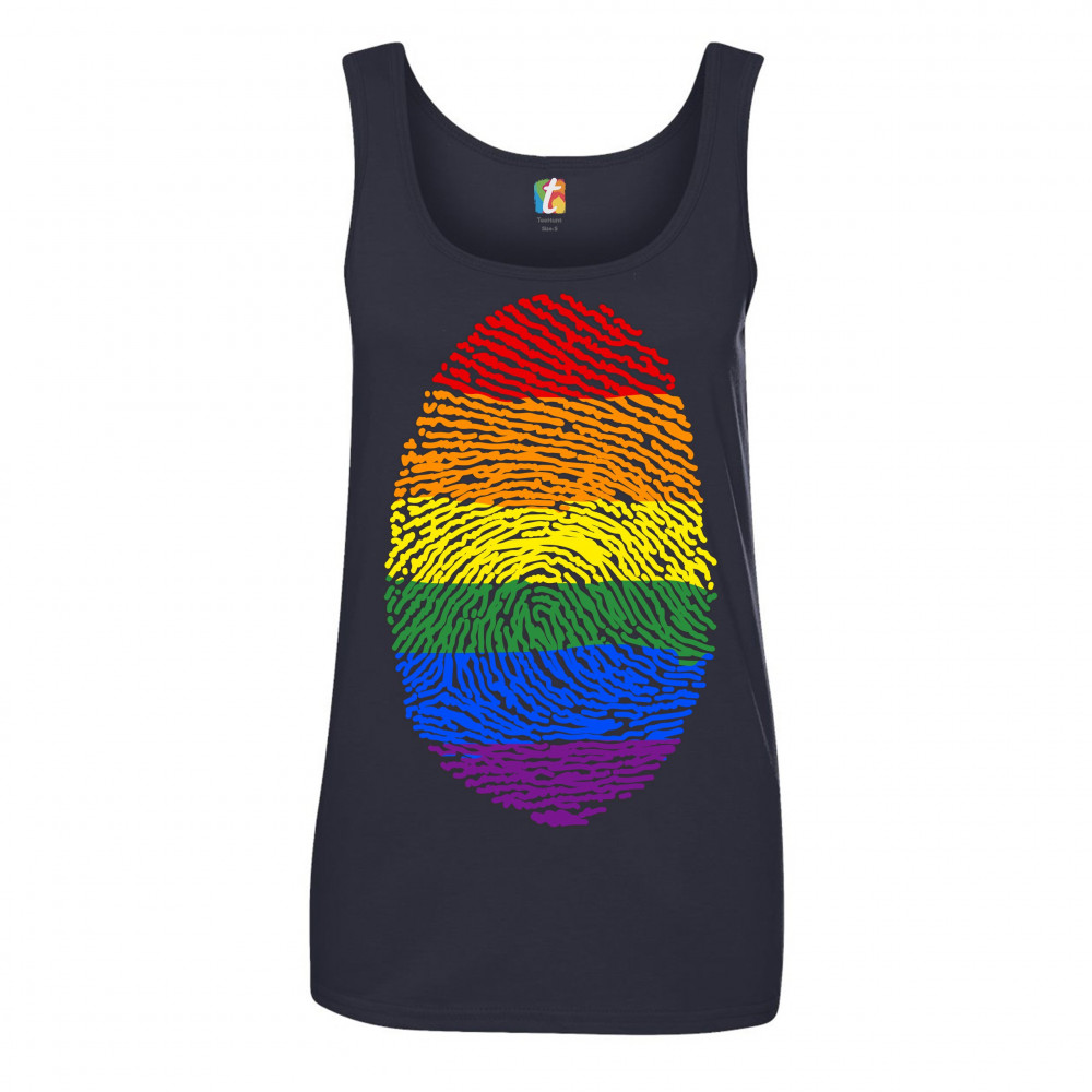 RAINBOW FINGERPRINT women's tank top gay pride month lgbtq support ally navy blue