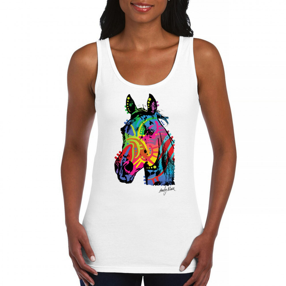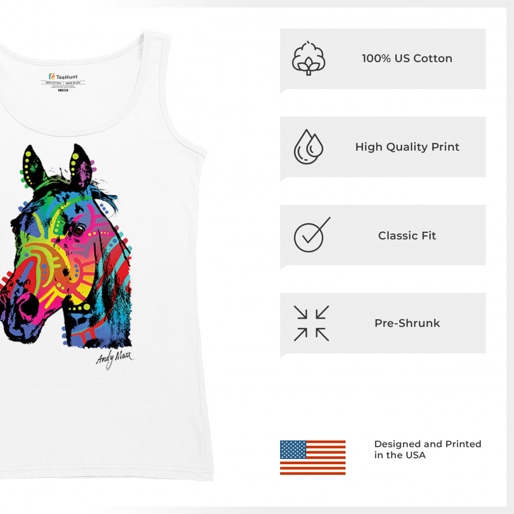 Bold rainbow horse head design with abstract pop art style. Great for equestrians, color lovers, and fans of modern animal artwork.