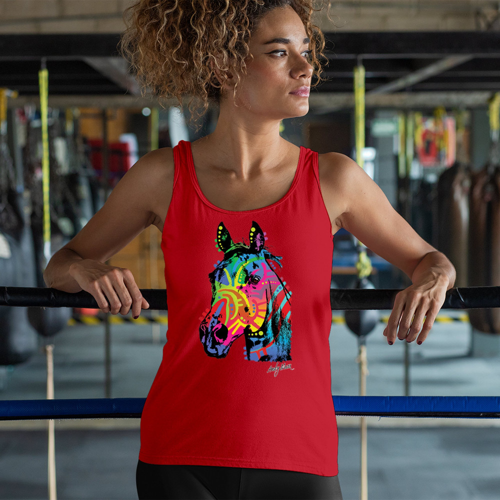 Bold rainbow horse head design with abstract pop art style. Great for equestrians, color lovers, and fans of modern animal artwork.