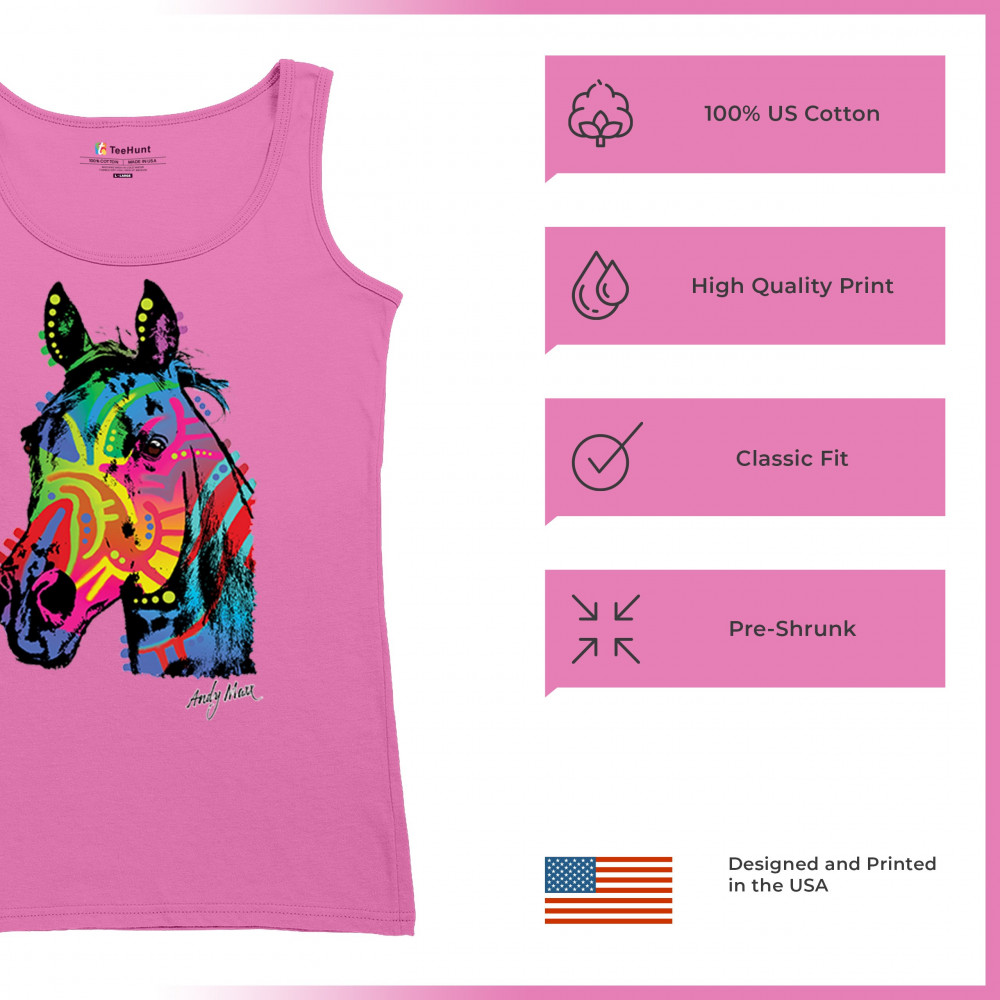 Bold rainbow horse head design with abstract pop art style. Great for equestrians, color lovers, and fans of modern animal artwork.