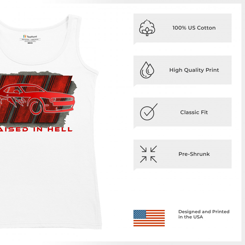 Bring heat to the streets with this Raised in Hell design. Featuring a blazing red muscle car and aggressive claw marks, it's perfect for Scat Pack lovers, burnout warriors, and throttle addicts. Whether you're tearing down the strip or parked at the meet, this design delivers pure muscle attitude and street-born fire.