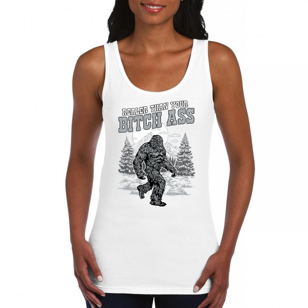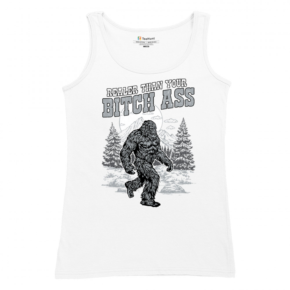 Edgy Bigfoot design with sarcastic cryptid humor and gritty wilderness style. Great for trolls, jokers, and rugged outdoors fans.