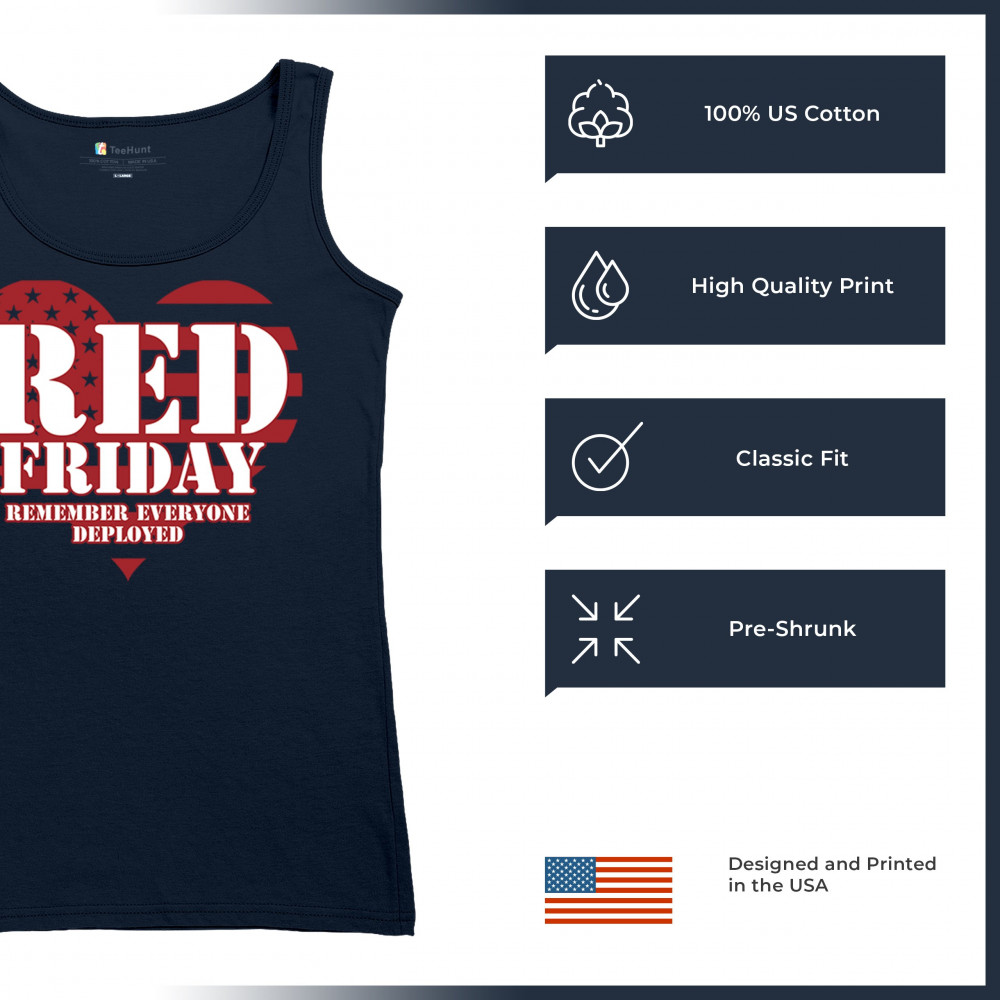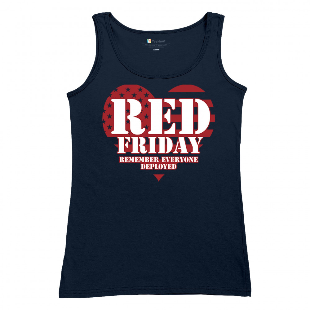 Show your support with our R.E.D. Friday shirt. Featuring a heart design with "Remember Everyone Deployed." Perfect for Veterans Day and patriotic events.