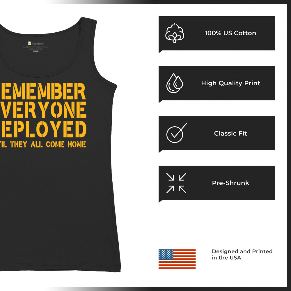 Show your support for deployed troops with our "Remember Everyone Deployed" shirt. Perfect for patriotic events like Veterans Day and Memorial Day.
