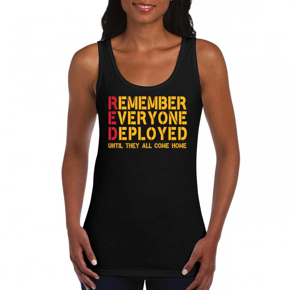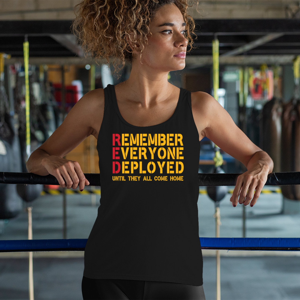 Show your support for our deployed troops with this "Remember Everyone Deployed" shirt. The bold and striking design is perfect for expressing your patriotic pride and honoring those who serve. Made from soft and durable materials, this shirt is ideal for everyday wear or special occasions like Veterans Day, Memorial Day, and the Fourth of July. Whether you're participating in a community event, attending a parade, or just want to show your appreciation, this shirt is a great choice. It also makes a thoughtful gift for anyone who supports our military heroes.