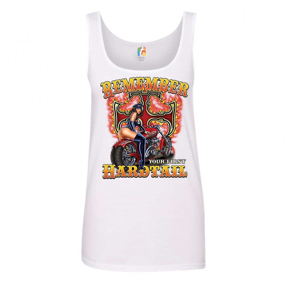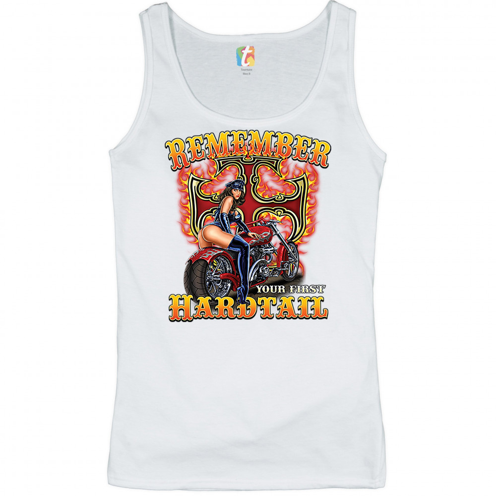 REMEMBER YOUR FIRST HARDTAIL women's tank top biker babe motorcycle chopper white